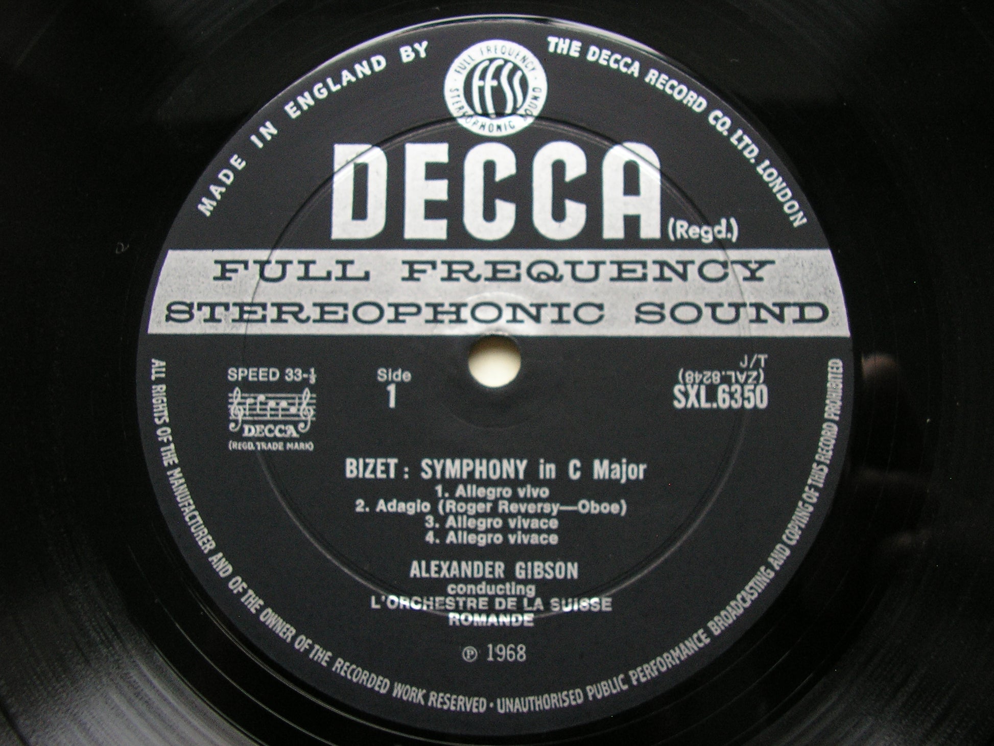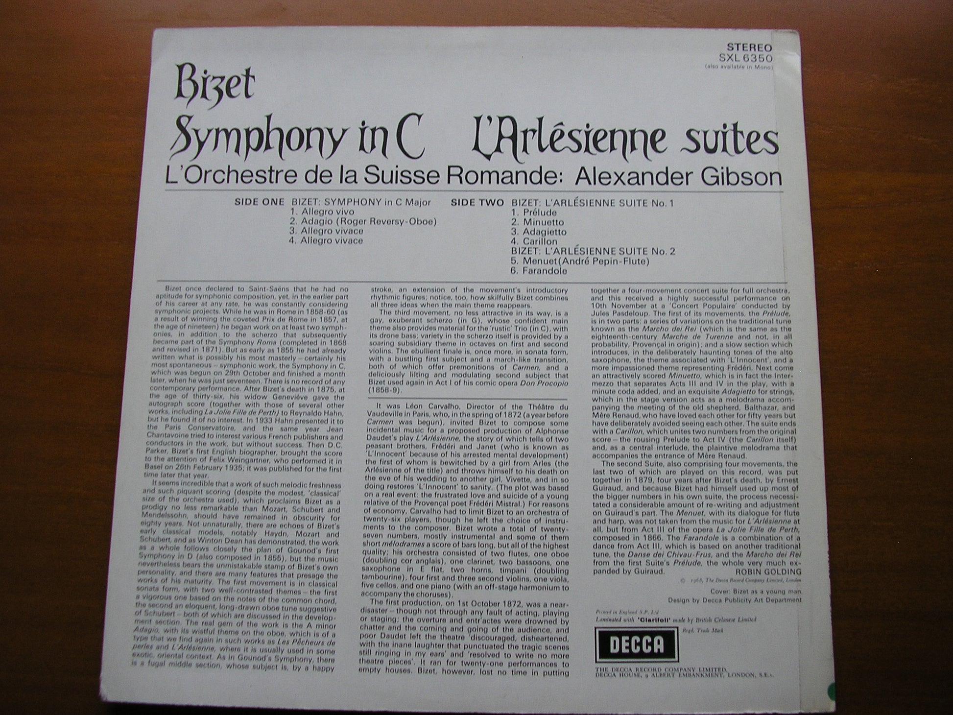 SXL 6350  BIZET: SYMPHONY in C / L'ARLESIENNE Suites    ALEXANDER GIBSON / SUISSE ROMANDE ORCHESTRA