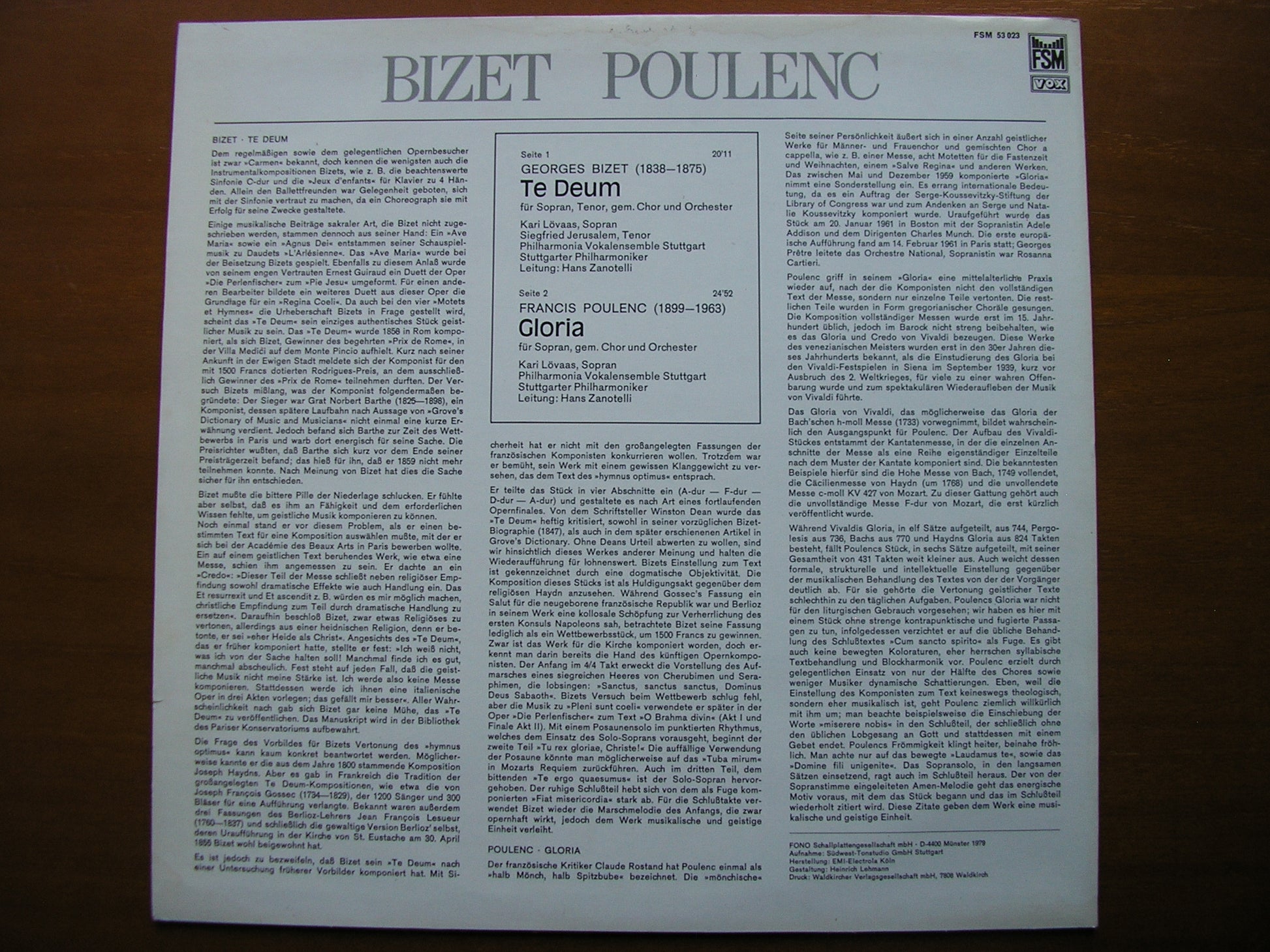 FSM 53 023  BIZET: TE DEUM / POULENC: GLORIA      KARI LOVAAS / SIEGFRIED JERUSALEM / STUTTGART PHILHARMONIC ORCHESTRA / HANS ZANOTELLI
