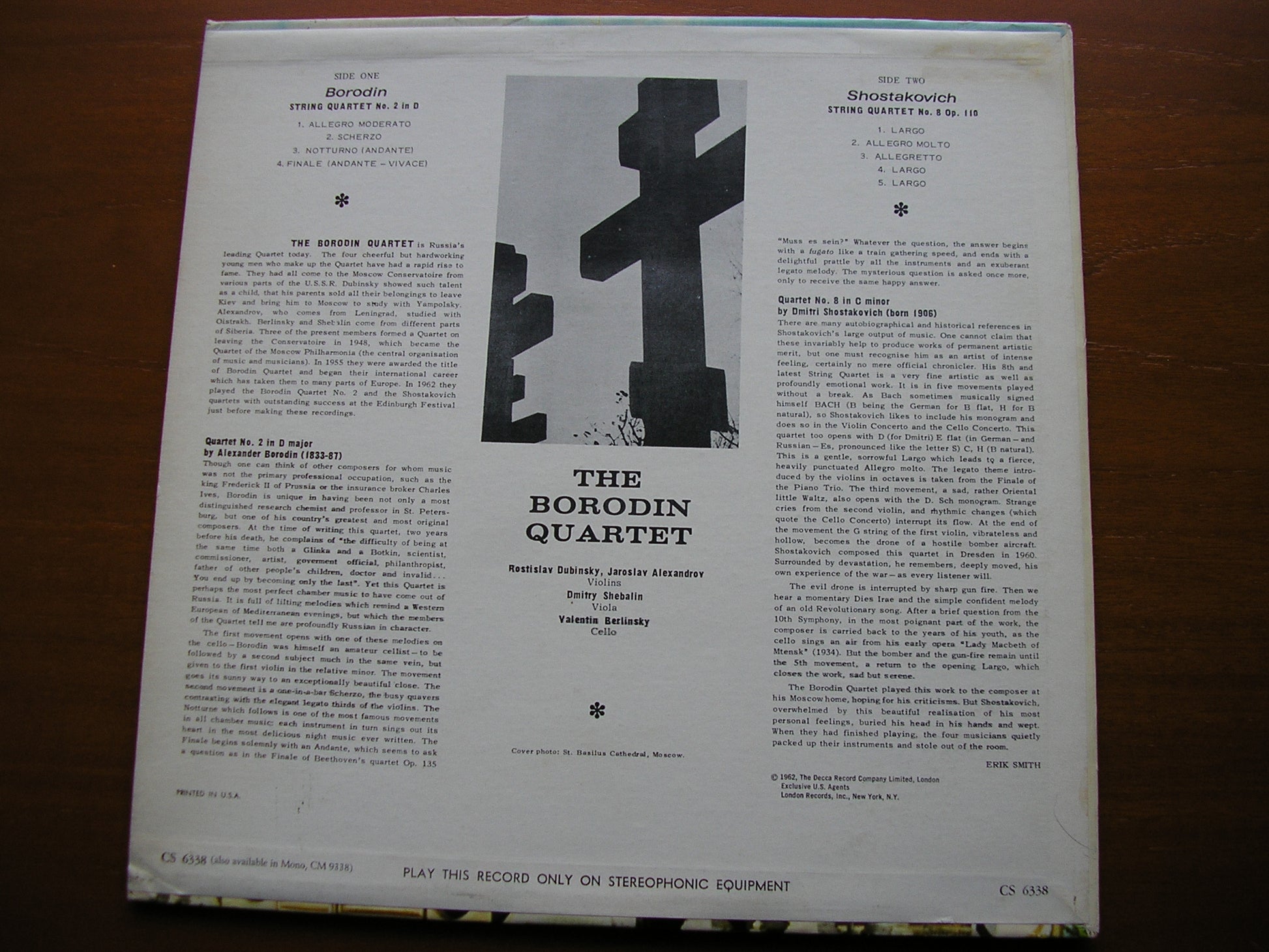 CS 6338  BORODIN: STRING QUARTET No. 2 / SHOSTAKOVICH: STRING QUARTET No. 8    BORODIN QUARTET