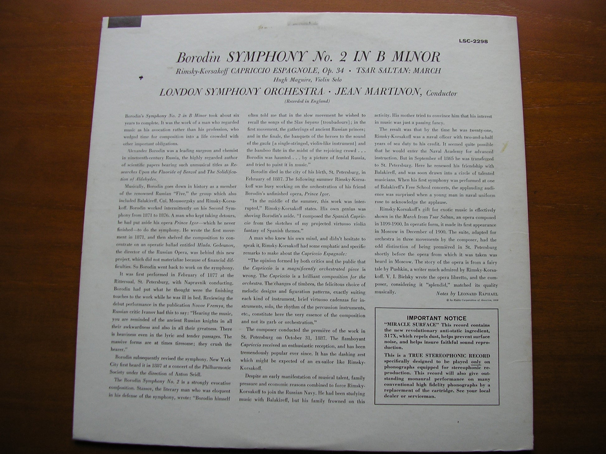 LSC 2298  BORODIN: SYMPHONY No. 2 / RIMSKY-KORSAKOV: CAPRICCIO ESPAGNOLE / MARCH from 'Tsar Sultan'   JEAN MARTINON / LONDON SYMPHONY ORCHESTRA