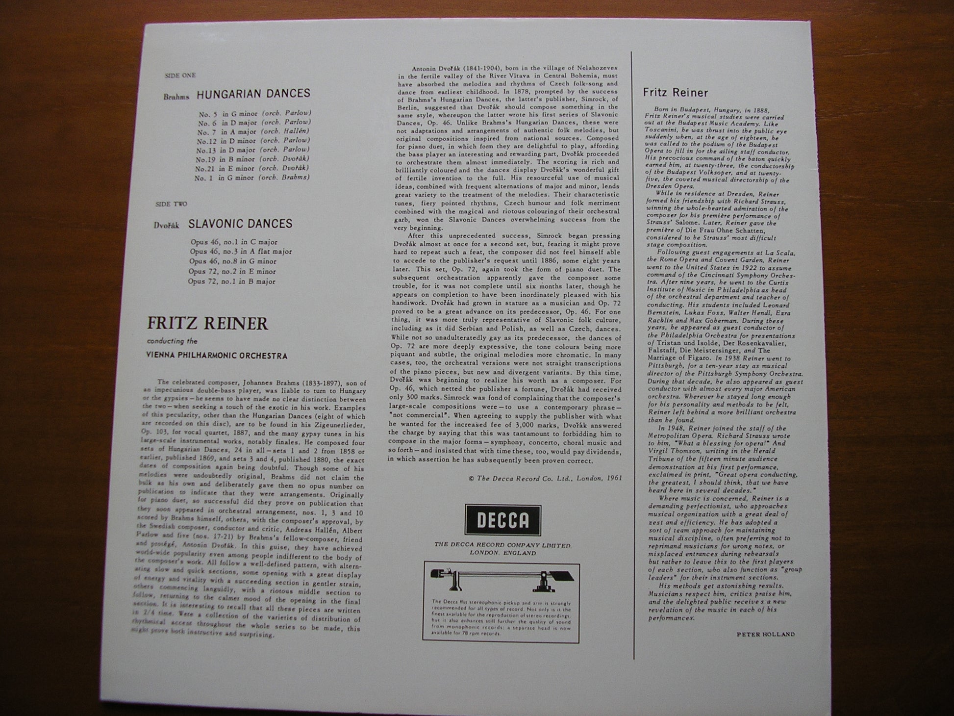 SXL 2249  BRAHMS: HUNGARIAN DANCES / DVORAK: SLAVONIC DANCES    FRITZ REINER / VIENNA PHILHARMONIC ORCHESTRA