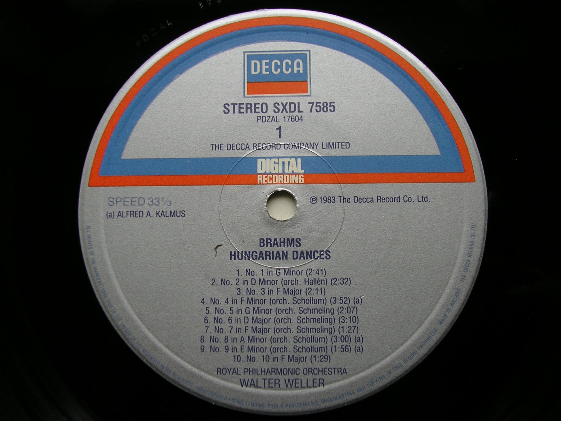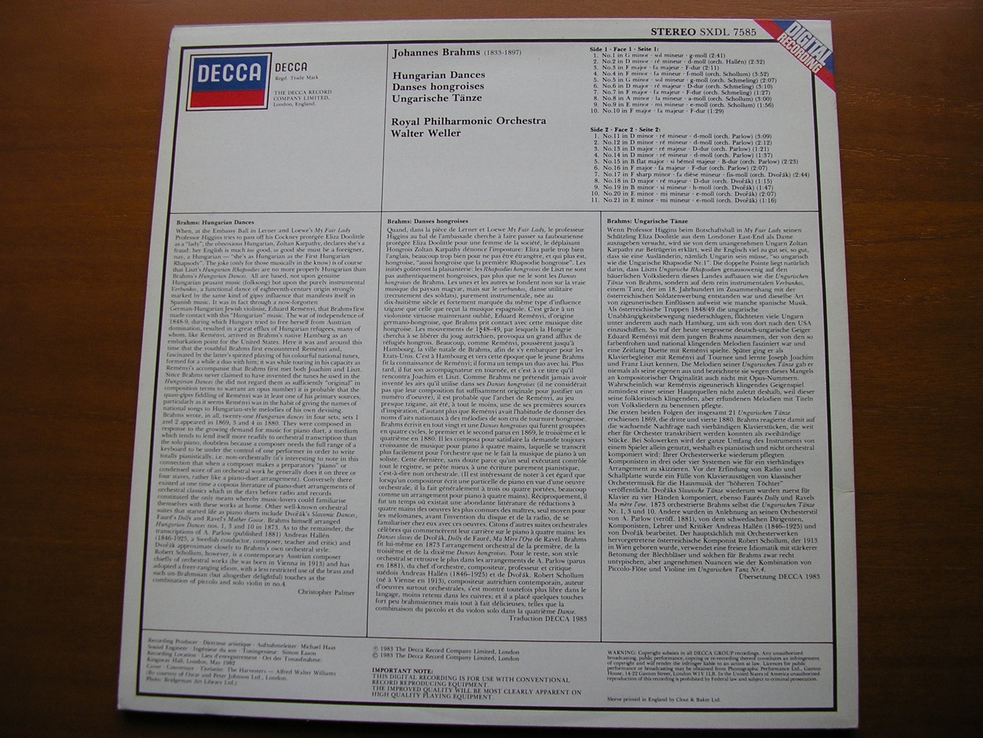 SXDL 7585  BRAHMS: HUNGARIAN DANCES      WALTER WELLER / ROYAL PHILHARMONIC ORCHESTRA