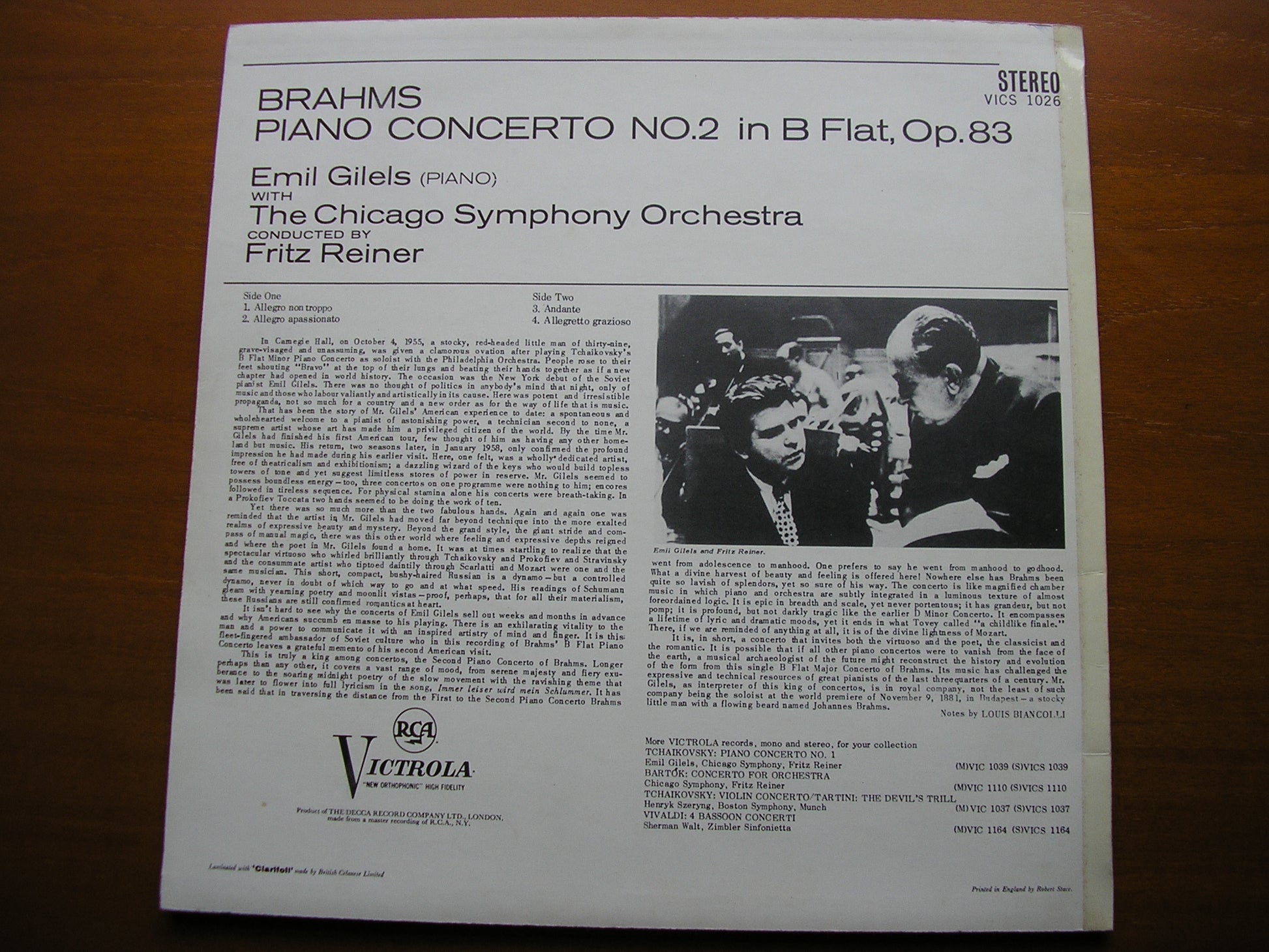 VICS 1026  BRAHMS: PIANO CONCERTO No. 2    EMIL GILELS / CHICAGO SYMPHONY ORCHESTRA / FRITZ REINER