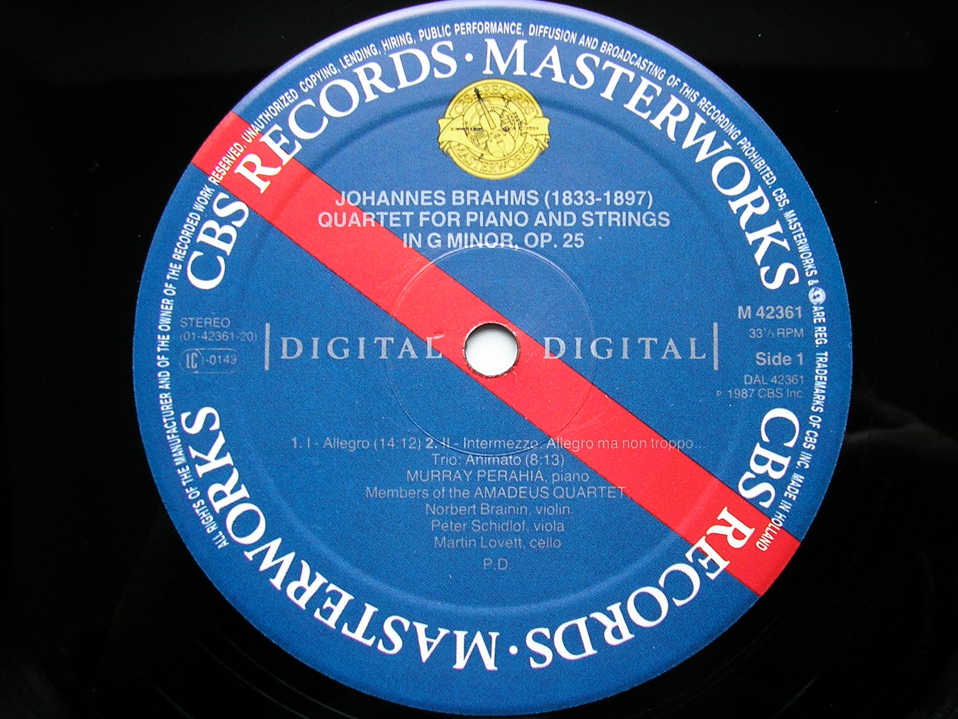 M 42361 BRAHMS: PIANO QUARTET No. 1  Op. 25      MURRAY PERAHIA / MEMBERS OF AMADEUS QUARTET