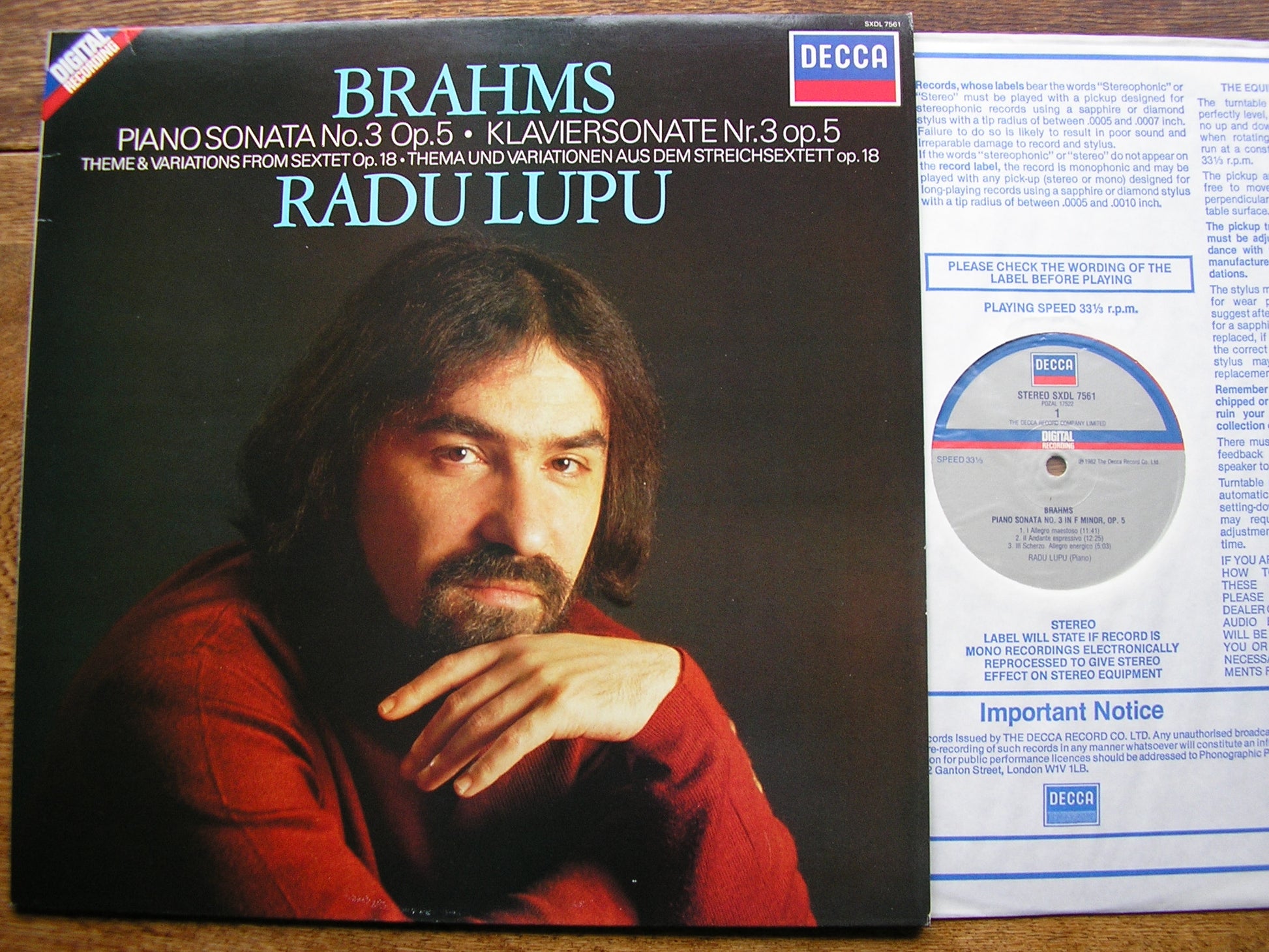 SXDL 7561 BRAHMS: PIANO SONATA No. 3 / THEME & VARIATIONS Op. 18      RADU LUPU