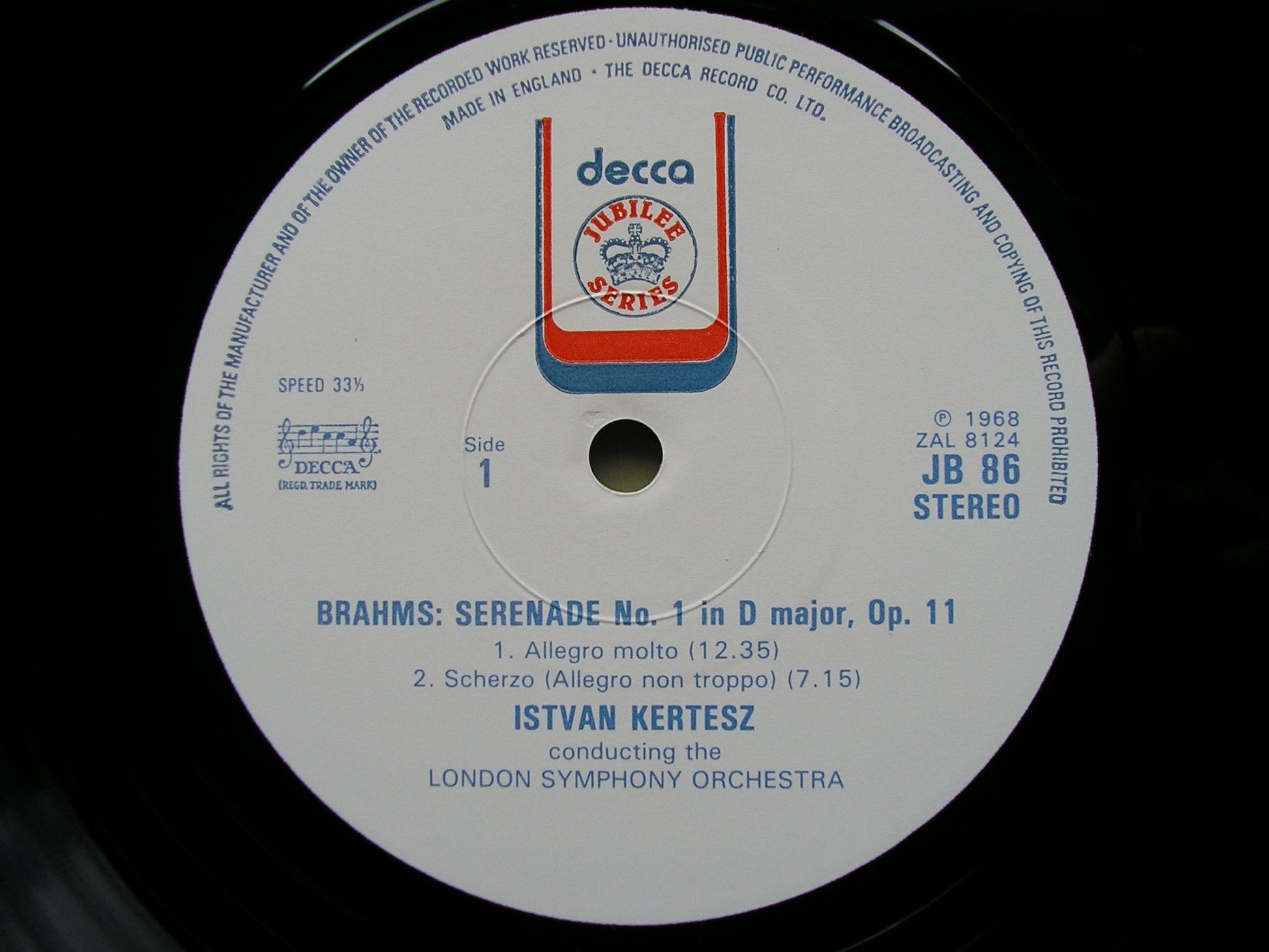 JB 86  BRAHMS: SERENADE No. 1 in D    ISTVAN KERTESZ / LONDON SYMPHONY ORCHESTRA