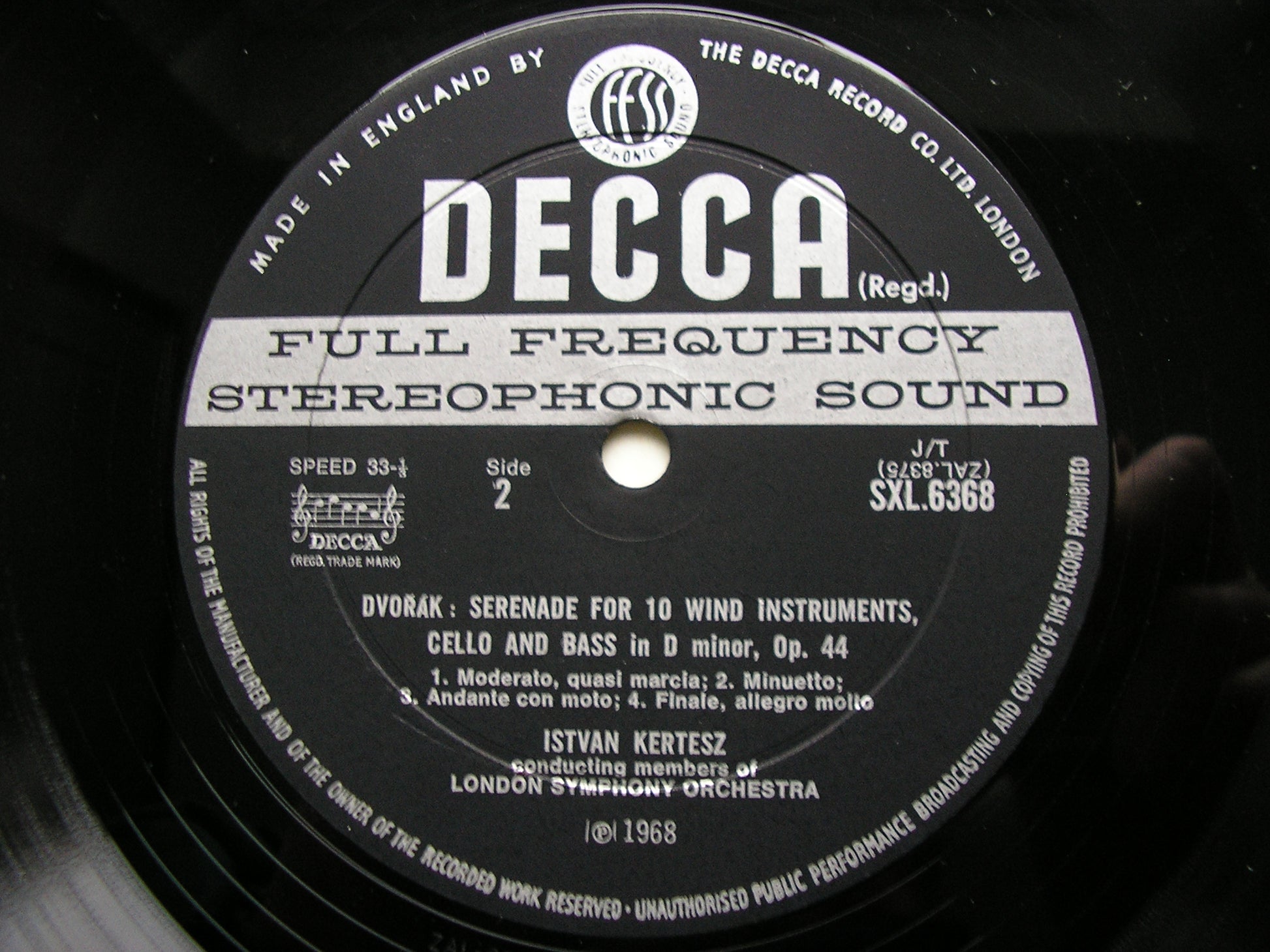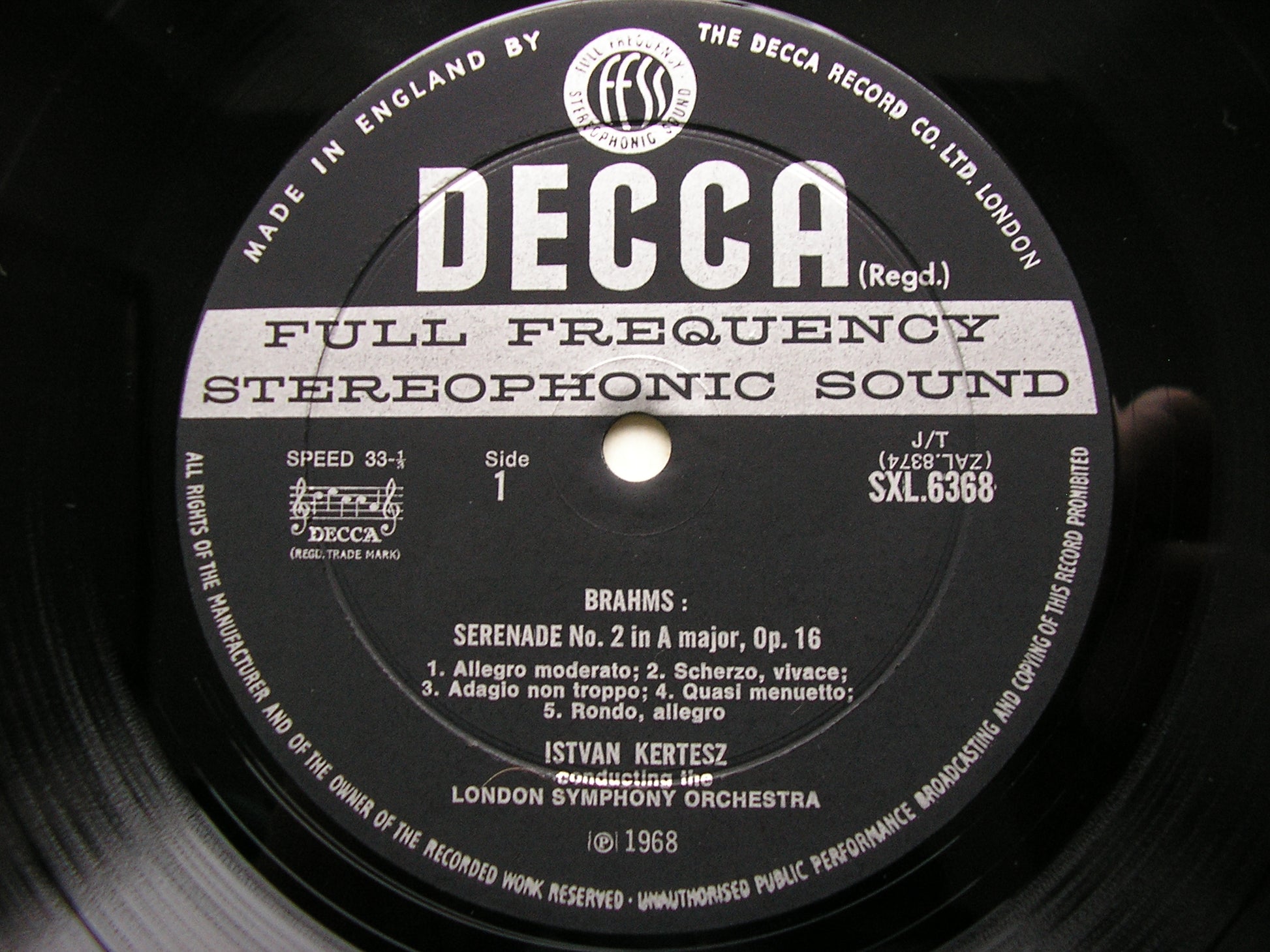 SXL 6368  BRAHMS: SERENADE No. 2 / DVORAK: WIND SERENADE Op. 44    ISTVAN KERTESZ / LONDON SYMPHONY ORCHESTRA