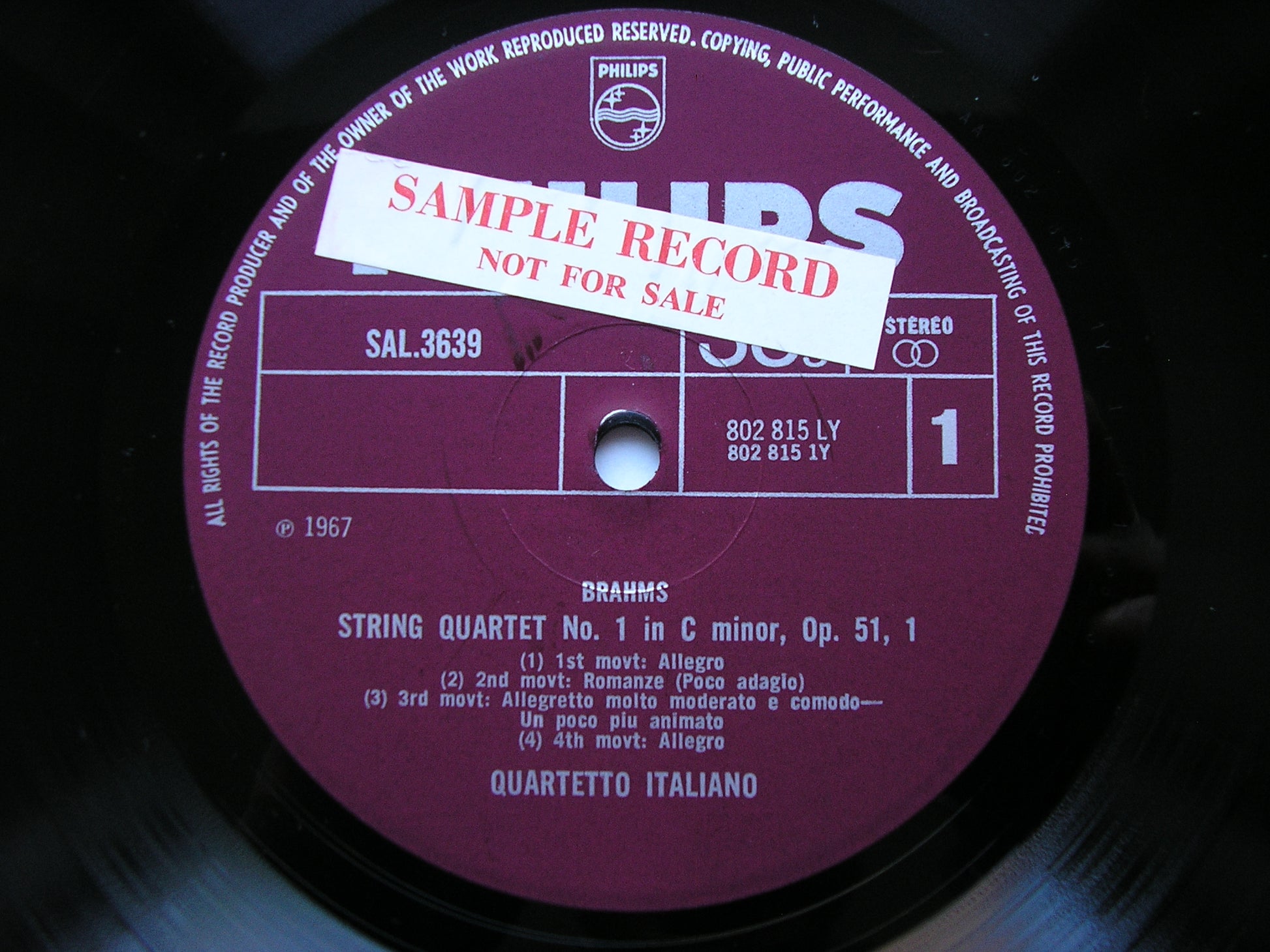 SAL 3639  BRAHMS: STRING QUARTET No. 1 / SCHUMANN: STRING QUARTET No. 1    QUARTETTO ITALIANO
