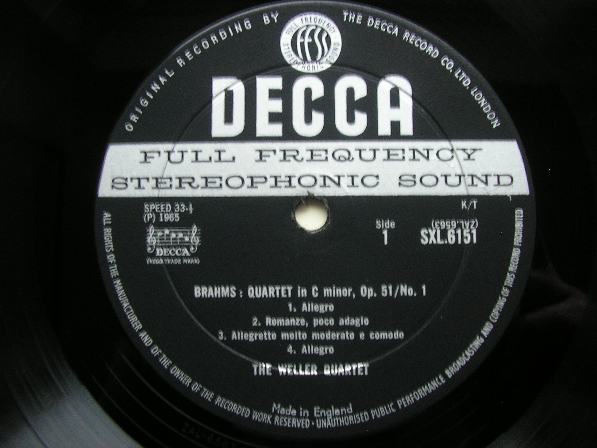 SXL 6151  BRAHMS: STRING QUARTETS Nos. 1 & 2     THE WELLER QUARTET