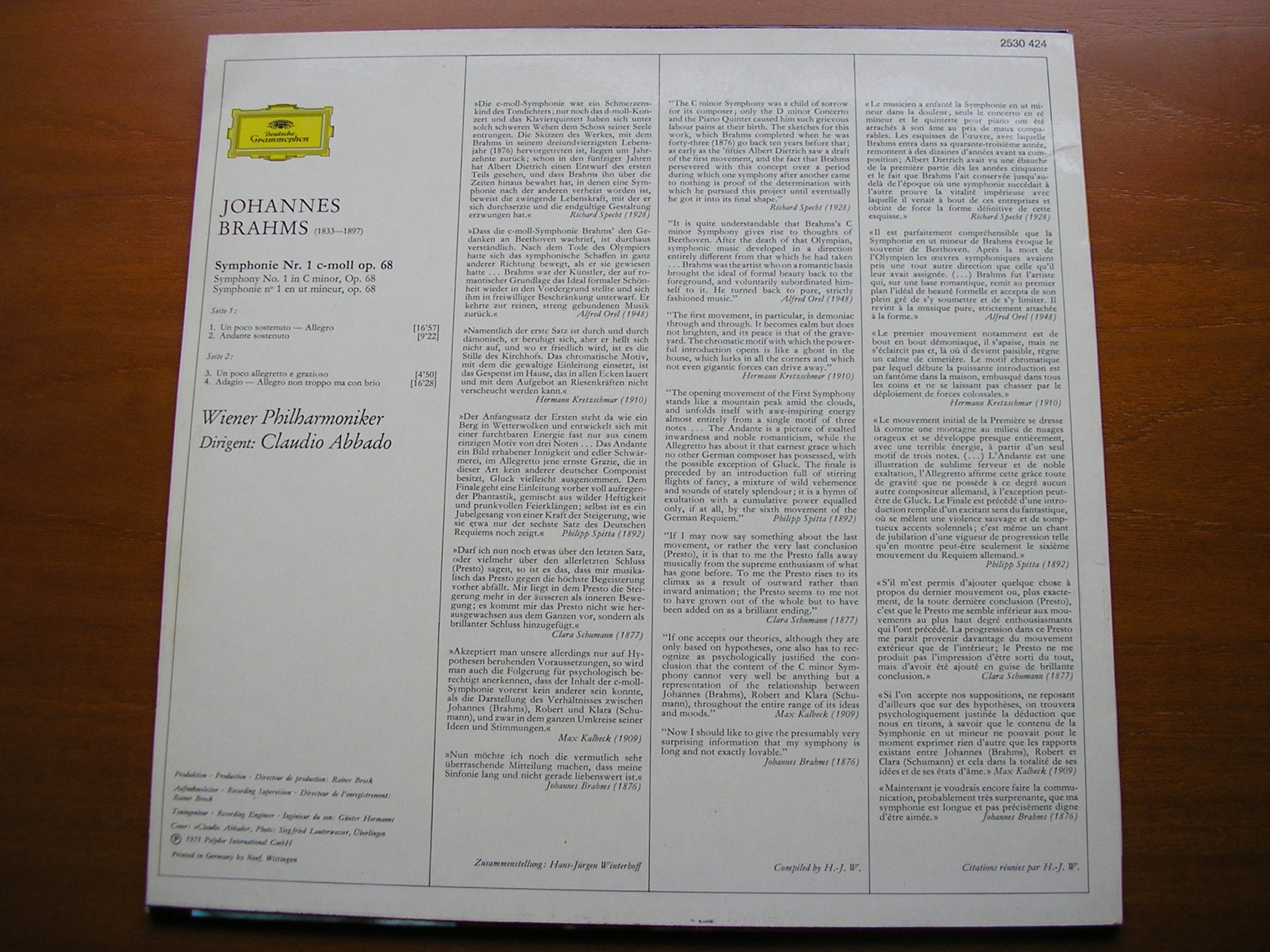 2530 424  BRAHMS: SYMPHONY No. 1     CLAUDIO ABBADO / VIENNA PHILHARMONIC ORCHESTRA