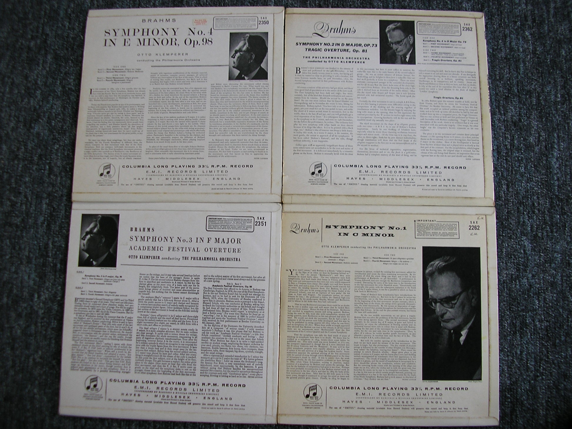 SAX 2262 / 2350 / 2351 / 2362  BRAHMS: THE FOUR SYMPHONIES / TRAGIC OVERTURE / ACADEMIC FESTIVAL OVERTURE     OTTO KLEMPERER / PHILHARMONIA ORCHESTRA