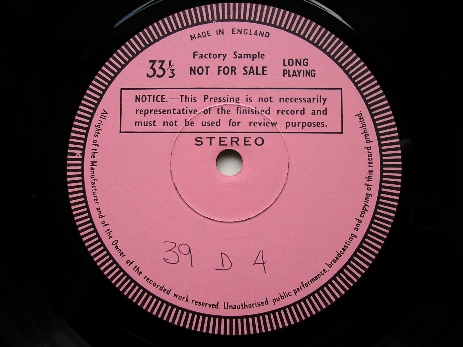 We do our very best to grade records honestly and accurately, but we do occasionally make mistakes, and our priority is to rectify problems to the satisfaction of the customer. With a stock of over 30,000 LPs we do not claim to have auditioned every record in our catalogue, but every LP is examined carefully during the listing process and any suspicious looking marks are auditioned before grading.
