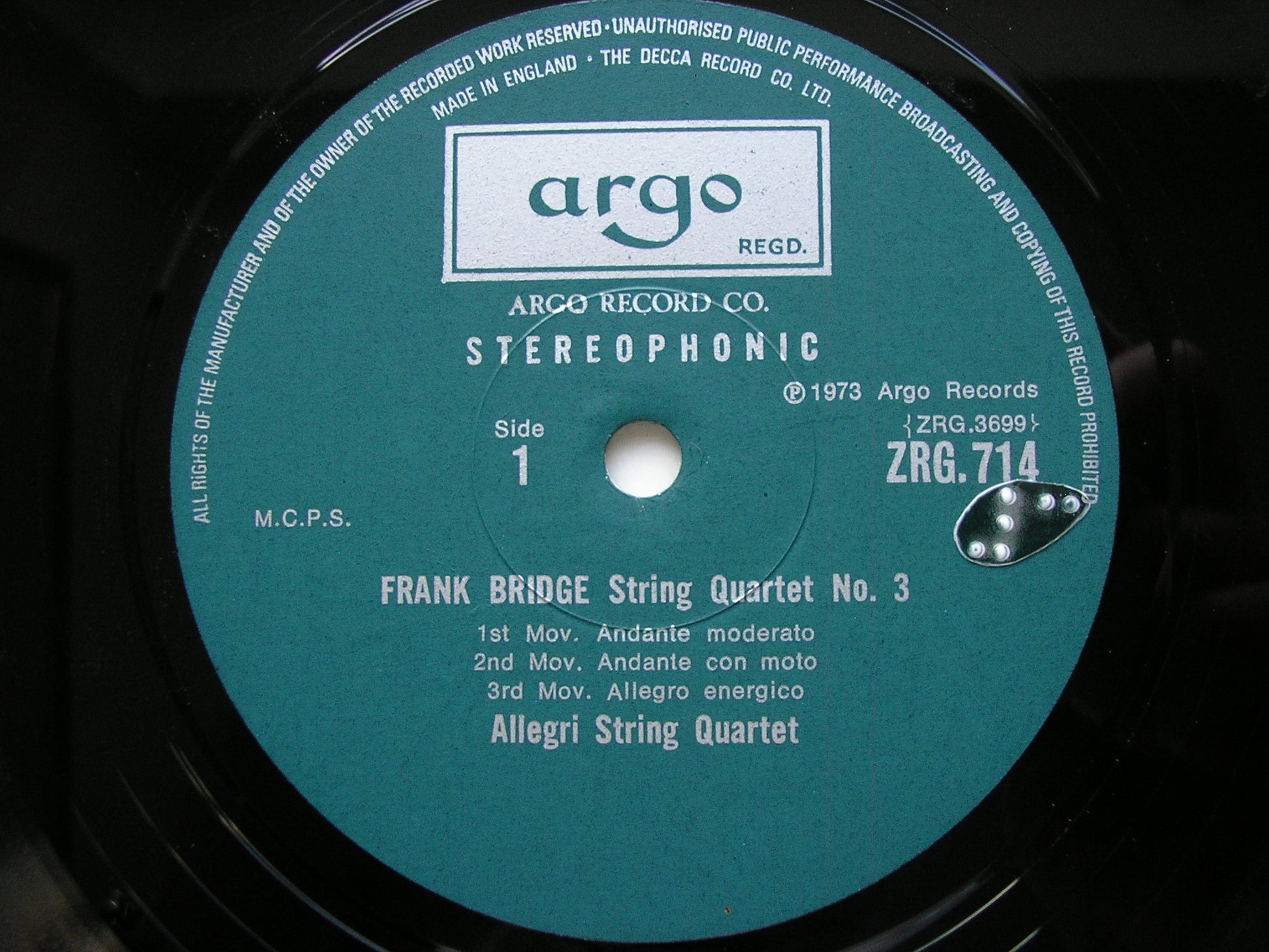 ZRG 714  BRIDGE: STRING QUARTETS Nos. 3 & 4       ALLEGRI STRING QUARTET