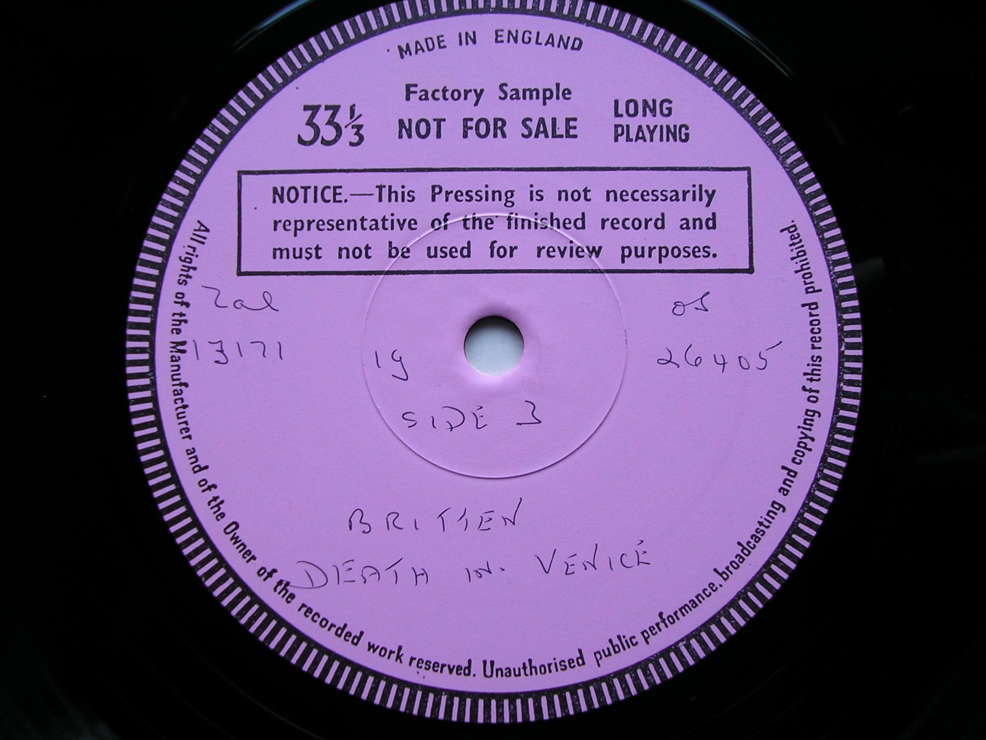 BRITTEN: DEATH IN VENICE PEARS / SHIRLEY-QUIRK / ENGLISH OPERA GROUP / ENGLISH CHAMBER ORCHESTRA / BEDFORD 3LP test pressing SET 581-3