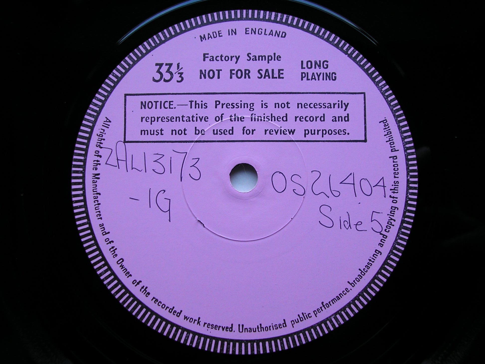 We do our very best to grade records honestly and accurately, but we do occasionally make mistakes, and our priority is to rectify problems to the satisfaction of the customer. With a stock of over 30,000 LPs we do not claim to have auditioned every record in our catalogue, but every LP is examined carefully during the listing process and any suspicious looking marks are auditioned before grading.