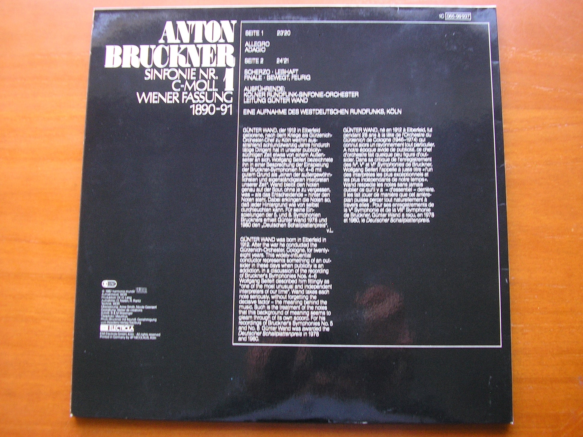 065 99937  BRUCKNER: SYMPHONY No. 1       GUNTER WAND / COLOGNE RADIO SYMPHONY ORCHESTRA