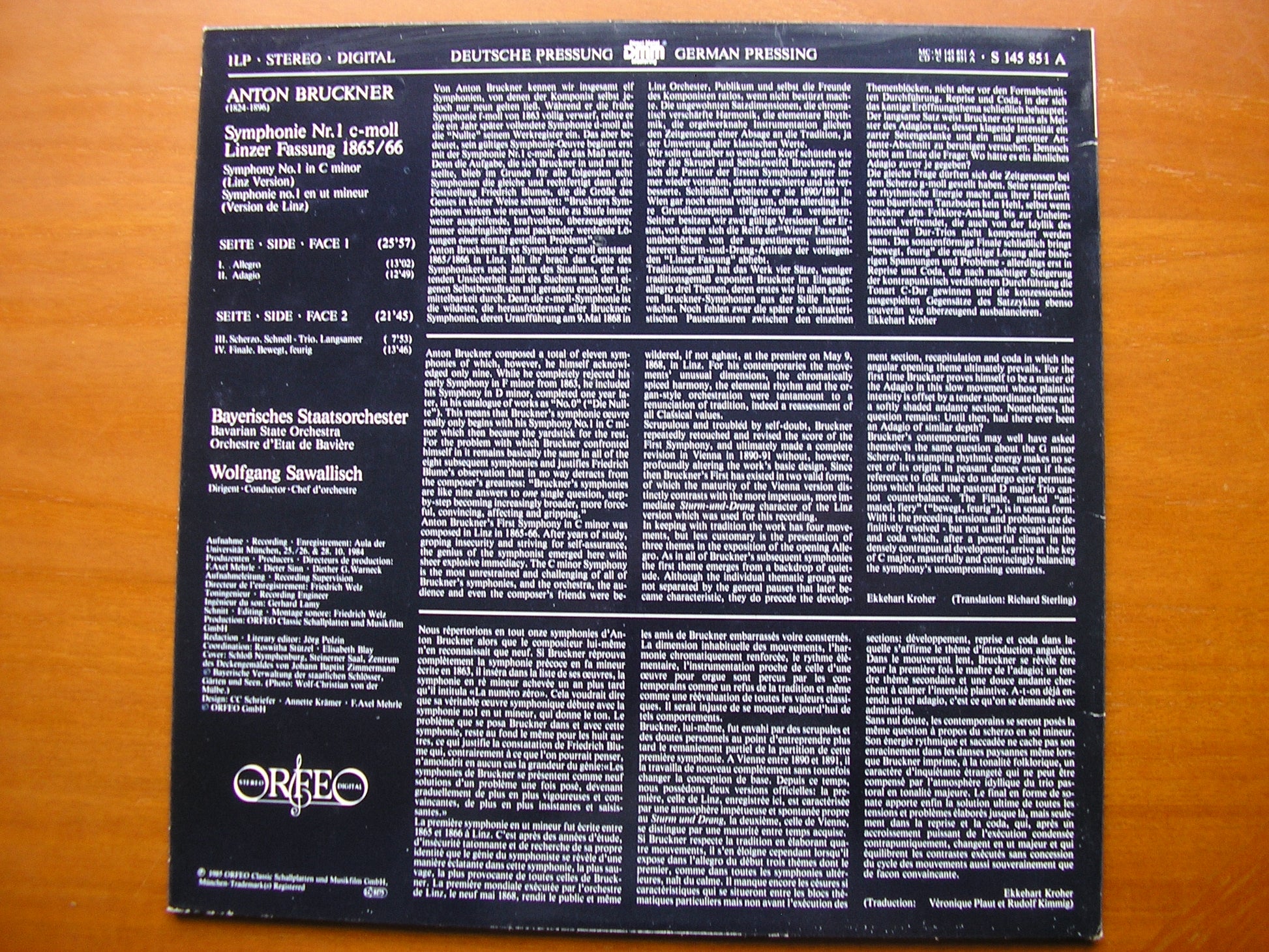 S 145 851  BRUCKNER: SYMPHONY No. 1    WOLFGANG SAWALLISCH / BAVARIAN STATE ORCHESTRA