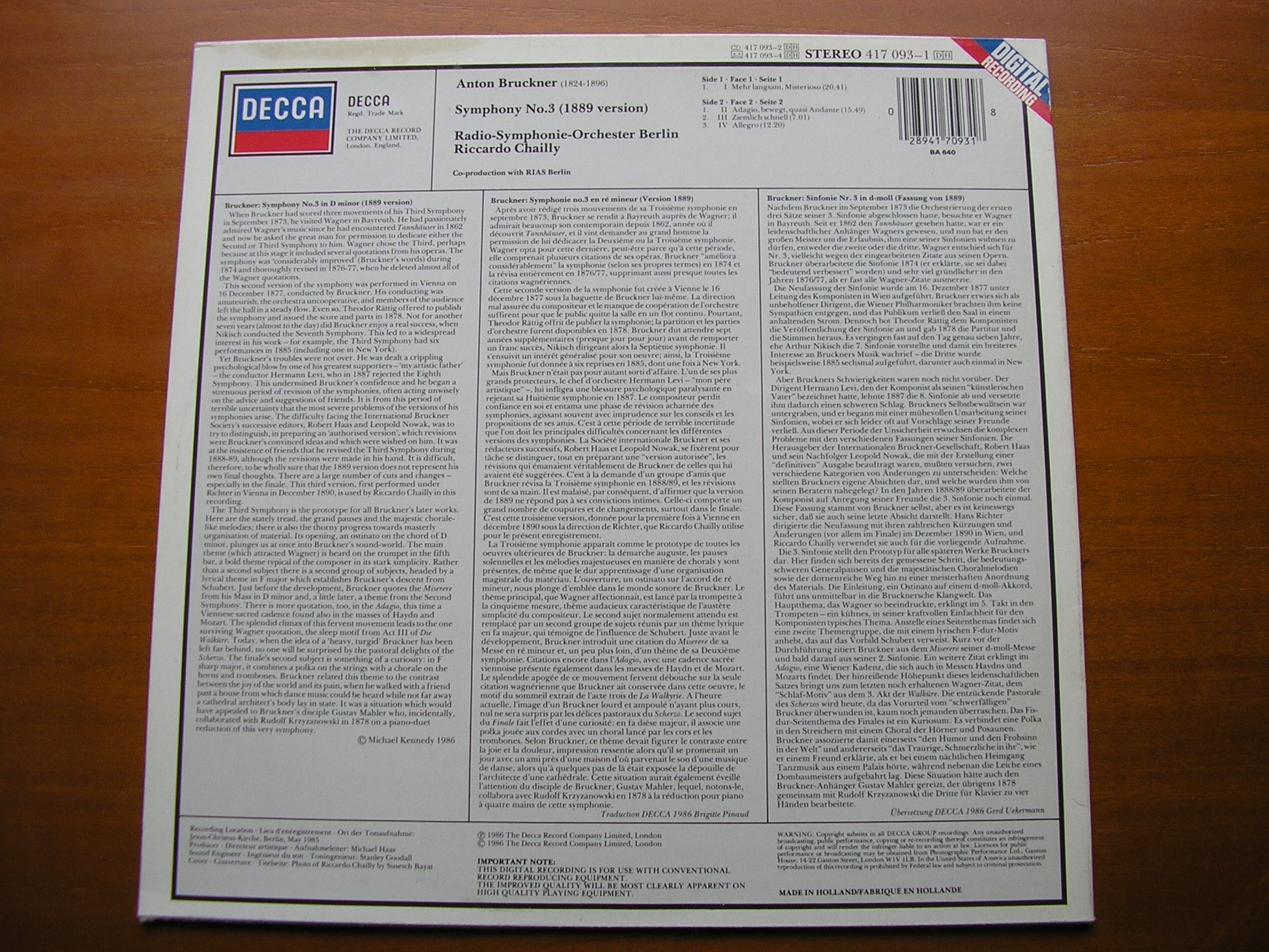 417 093  BRUCKNER: SYMPHONY No. 3     RICCARDO CHAILLY / BERLIN RADIO SYMPHONY ORCHESTRA