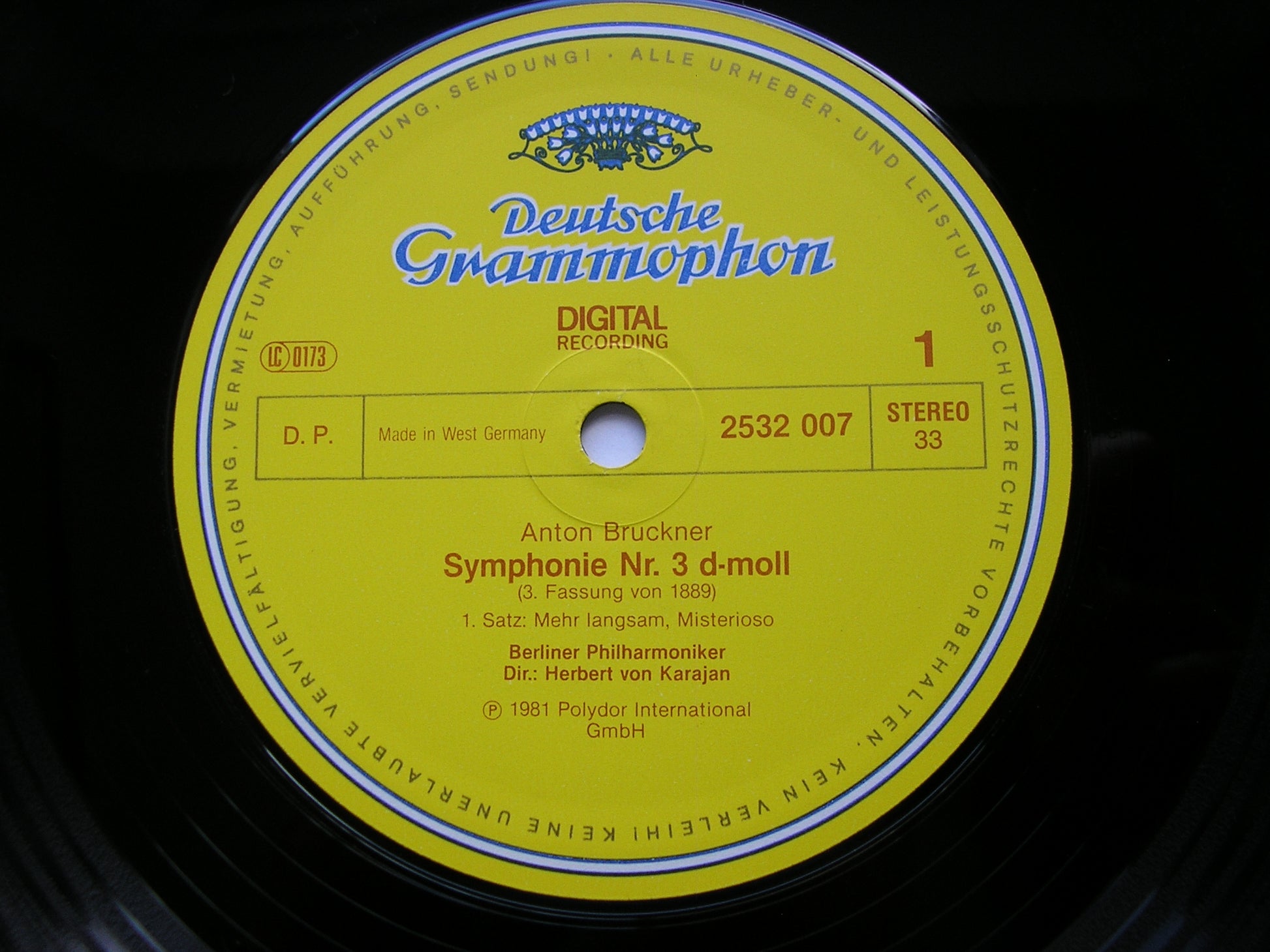 2532 007  BRUCKNER: SYMPHONY No. 3       HERBERT VON KARAJAN / BERLIN PHILHARMONIC ORCHESTRA