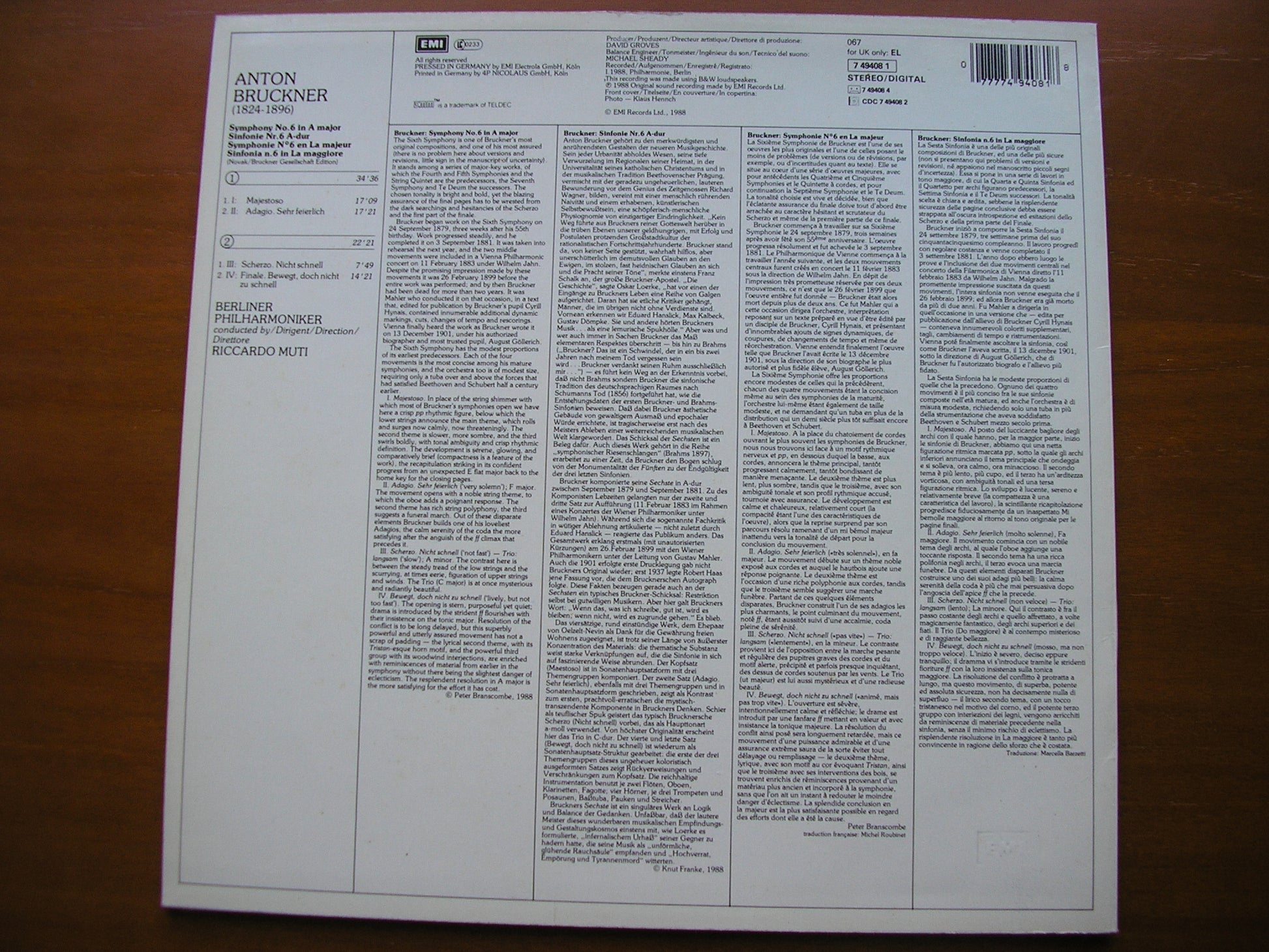 7 49408  BRUCKNER:SYMPHONY No. 6     RICCARDO MUTI / BERLIN PHILHARMONIC ORCHESTRA