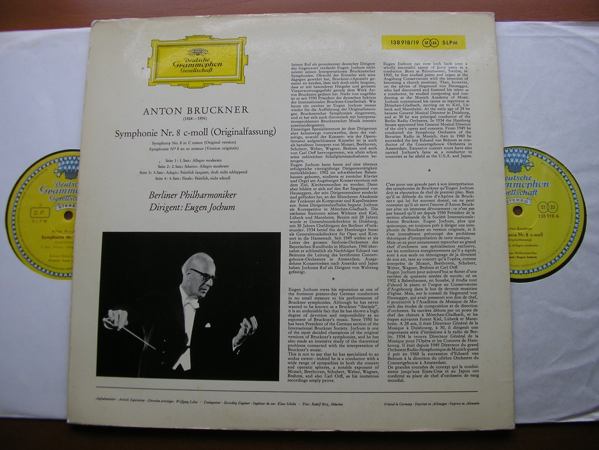 138 918 / 919  BRUCKNER: SYMPHONY No. 8    EUGEN JOCHUM / BERLIN PHILHARMONIC ORCHESTRA