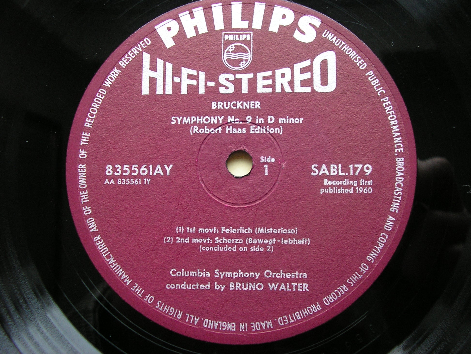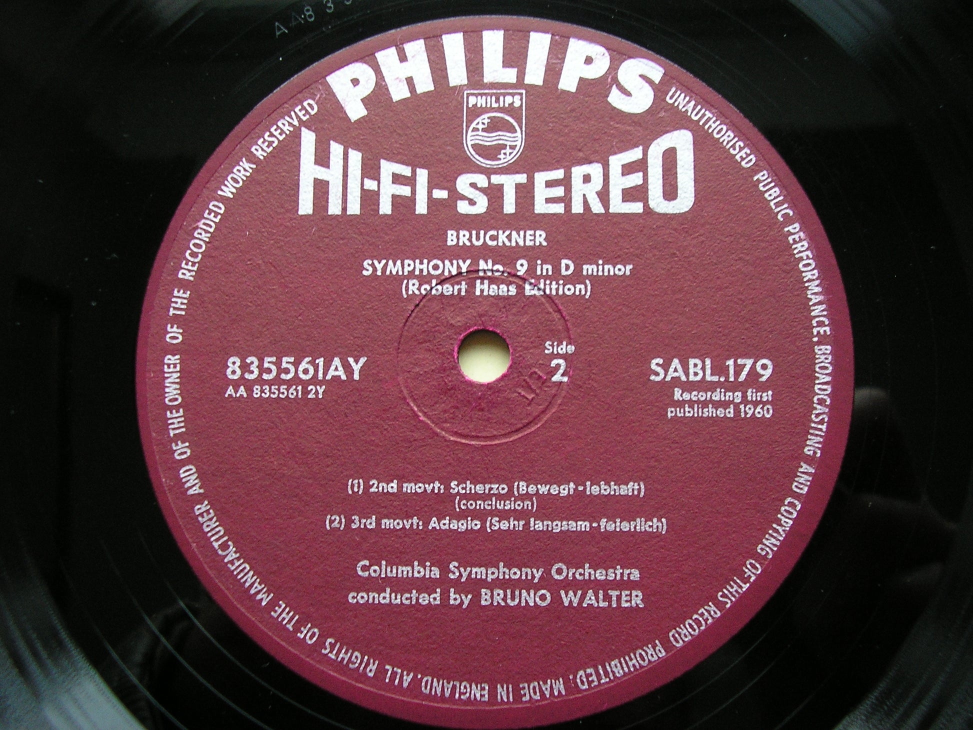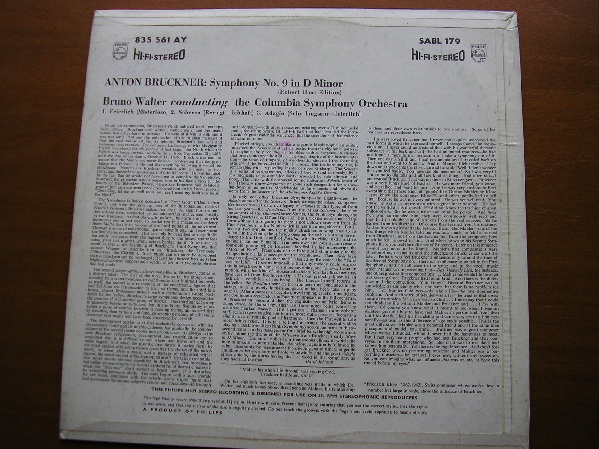BRUCKNER: SYMPHONY No. 9 BRUNO WALTER / COLUMBIA SYMPHONY SABL 179