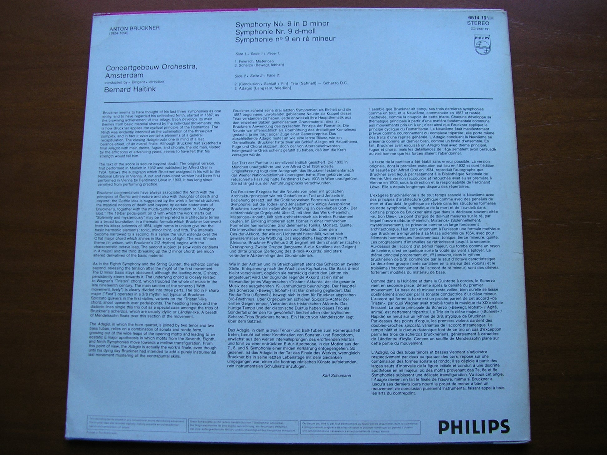 6514 191  BRUCKNER: SYMPHONY No. 9       BERNARD HAITINK / CONCERTGEBOUW ORCHESTRA AMSTERDAM