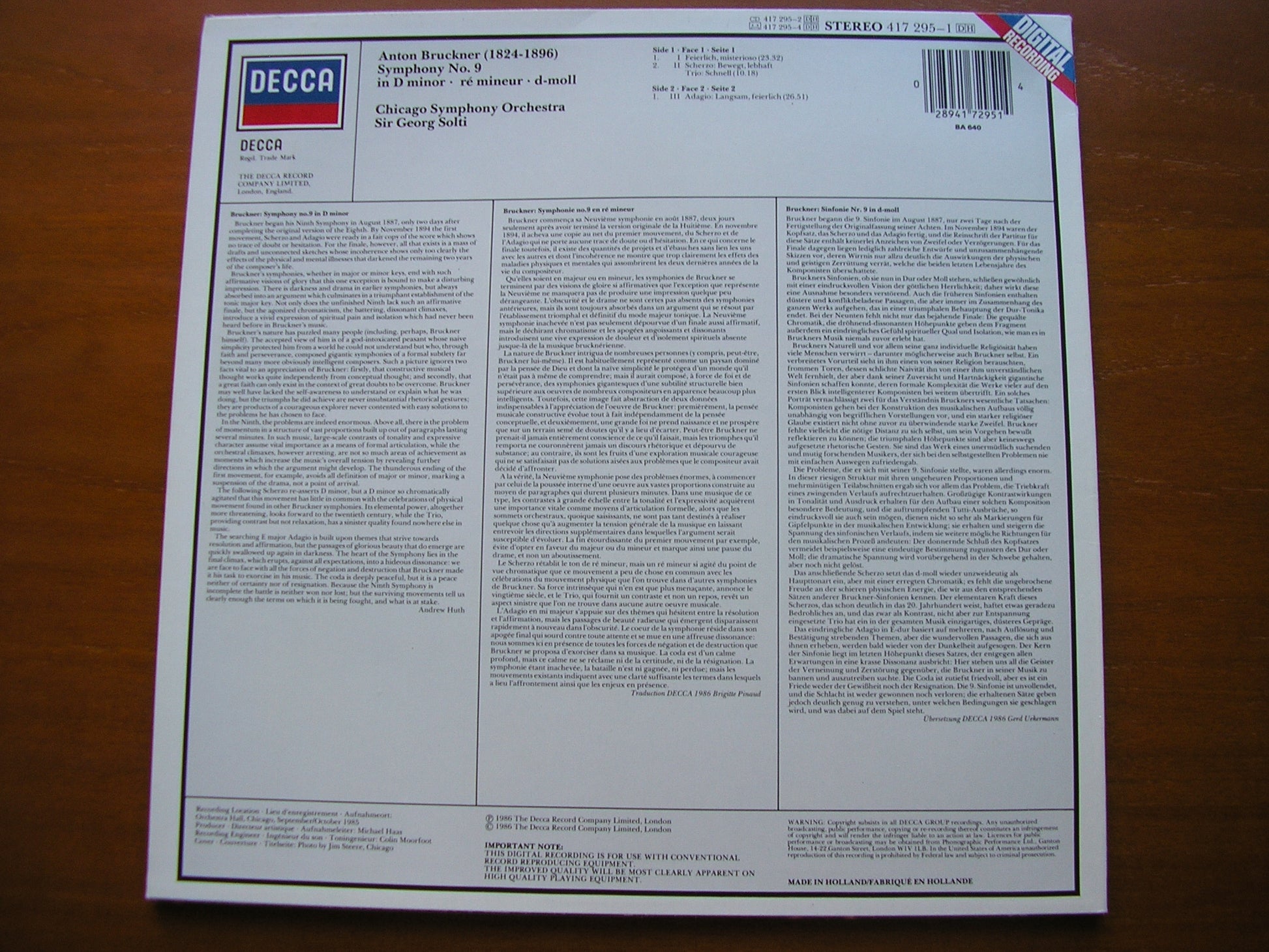 417 295  BRUCKNER: SYMPHONY No. 9    SIR GEORG SOLTI / CHICAGO SYMPHONY ORCHESTRA