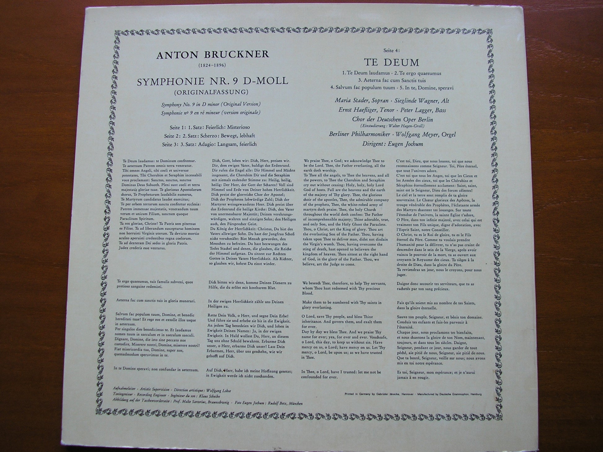 139 117 / 8  BRUCKNER: SYMPHONY No. 9 / TE DEUM    SOLOISTS / BERLIN PHILHARMONIC / EUGEN JOCHUM