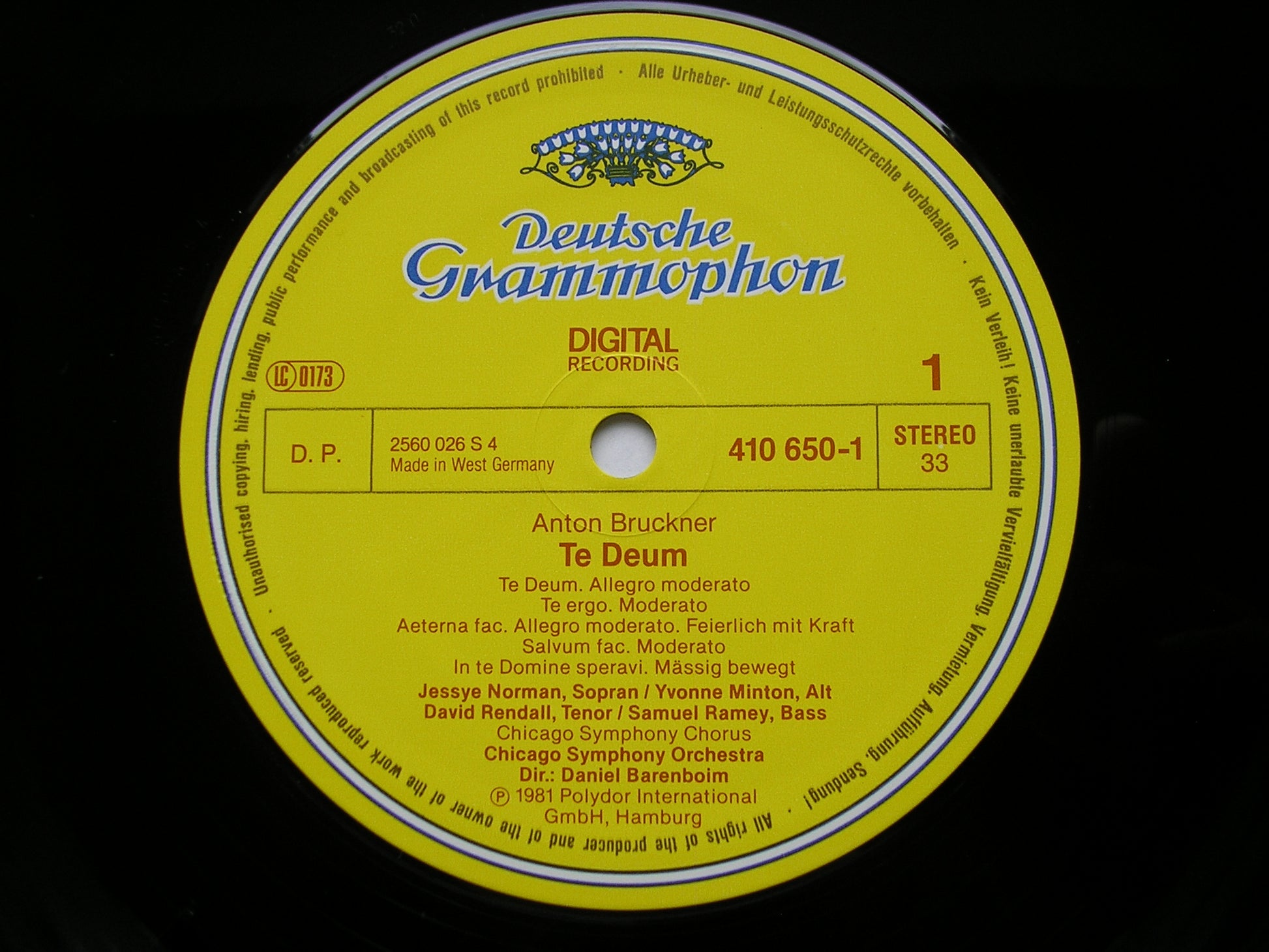 BRUCKNER: TE DEUM / PSALM 150 / HELGOLAND BARENBOIM / CHICAGO SYMPHONY 410 650