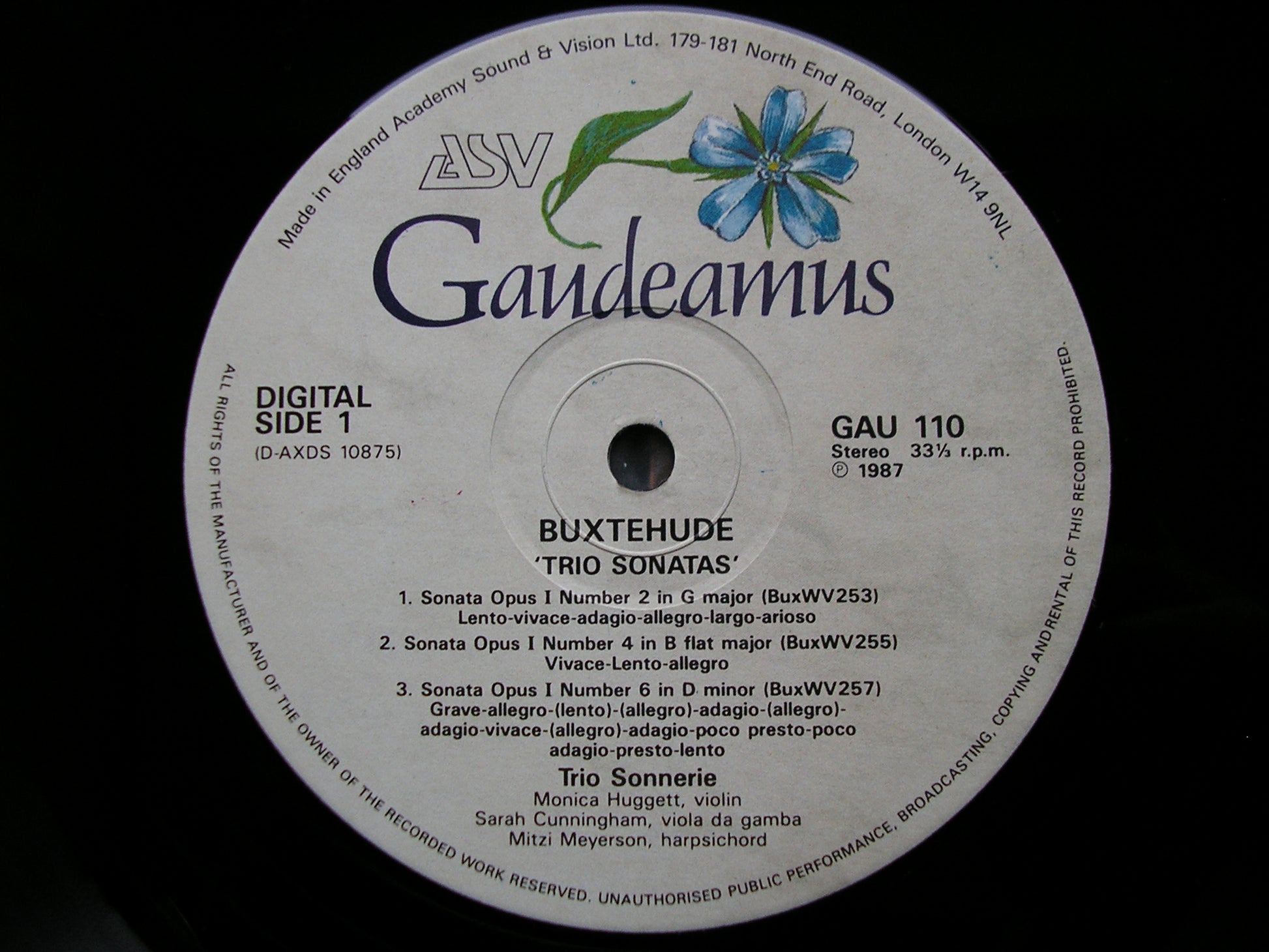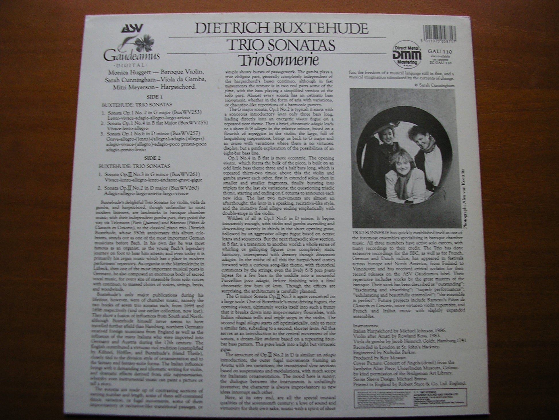GAU 110  BUXTEHUDE: TRIO SONATAS Op. 1 Nos. 2 / 4 / 6 / Op. 2 Nos. 2 / 3    MONICA HUGGETT / SARAH CUNNINGHAM / MITZI MEYERSON