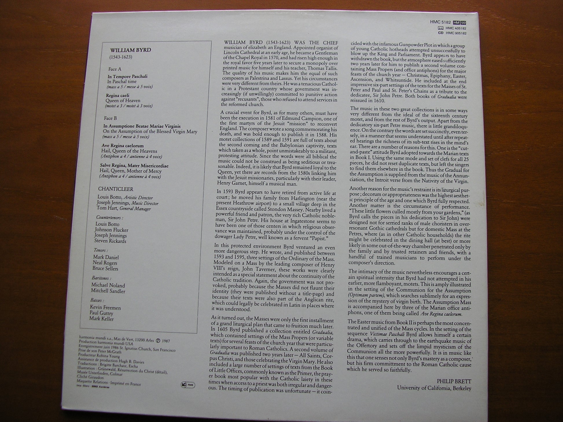 HMU 5182  BYRD: MISSA IN TEMPORE PASCHALI       CHANTICLEER