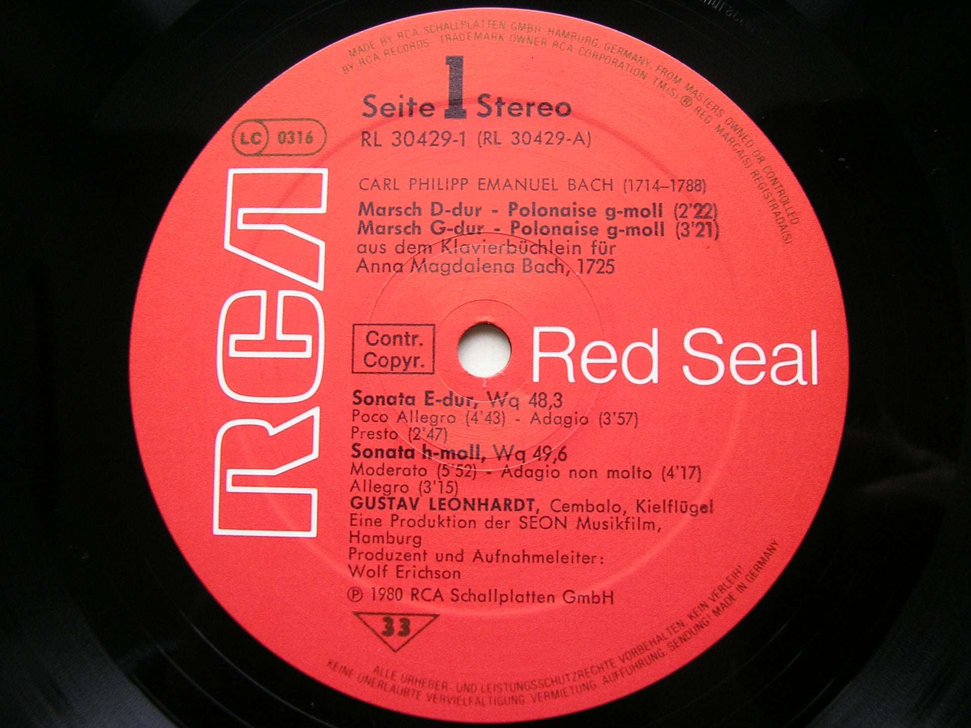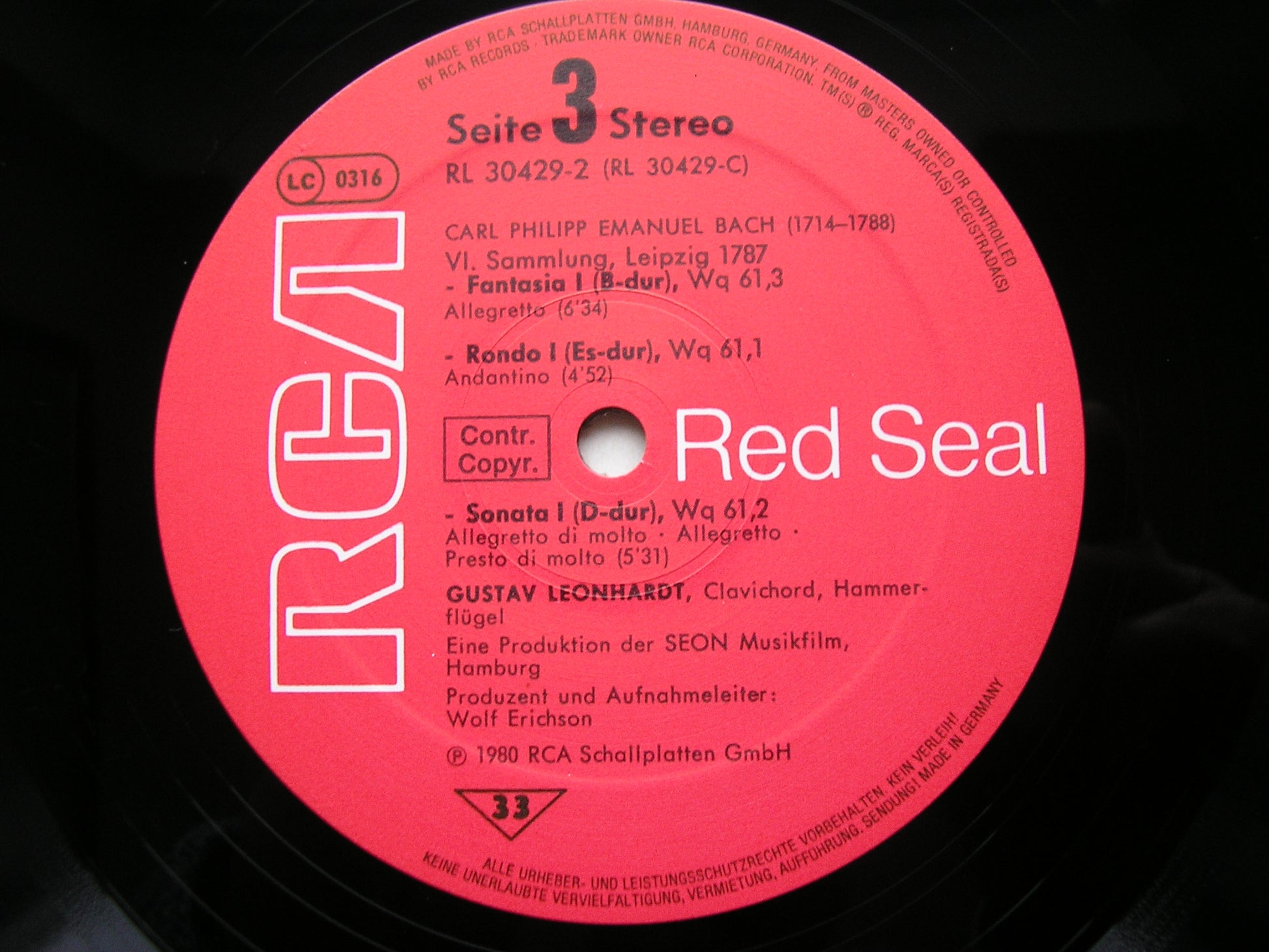 RL 30429  C P E BACH: SONATAS / RONDOS / FANTASIAS          GUSTAV LEONHARDT, fortepiano & harpsichord