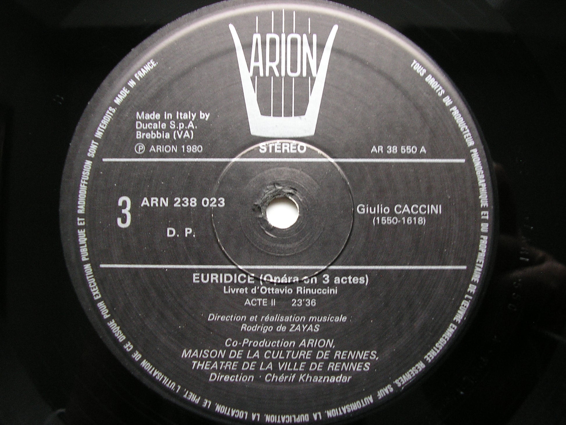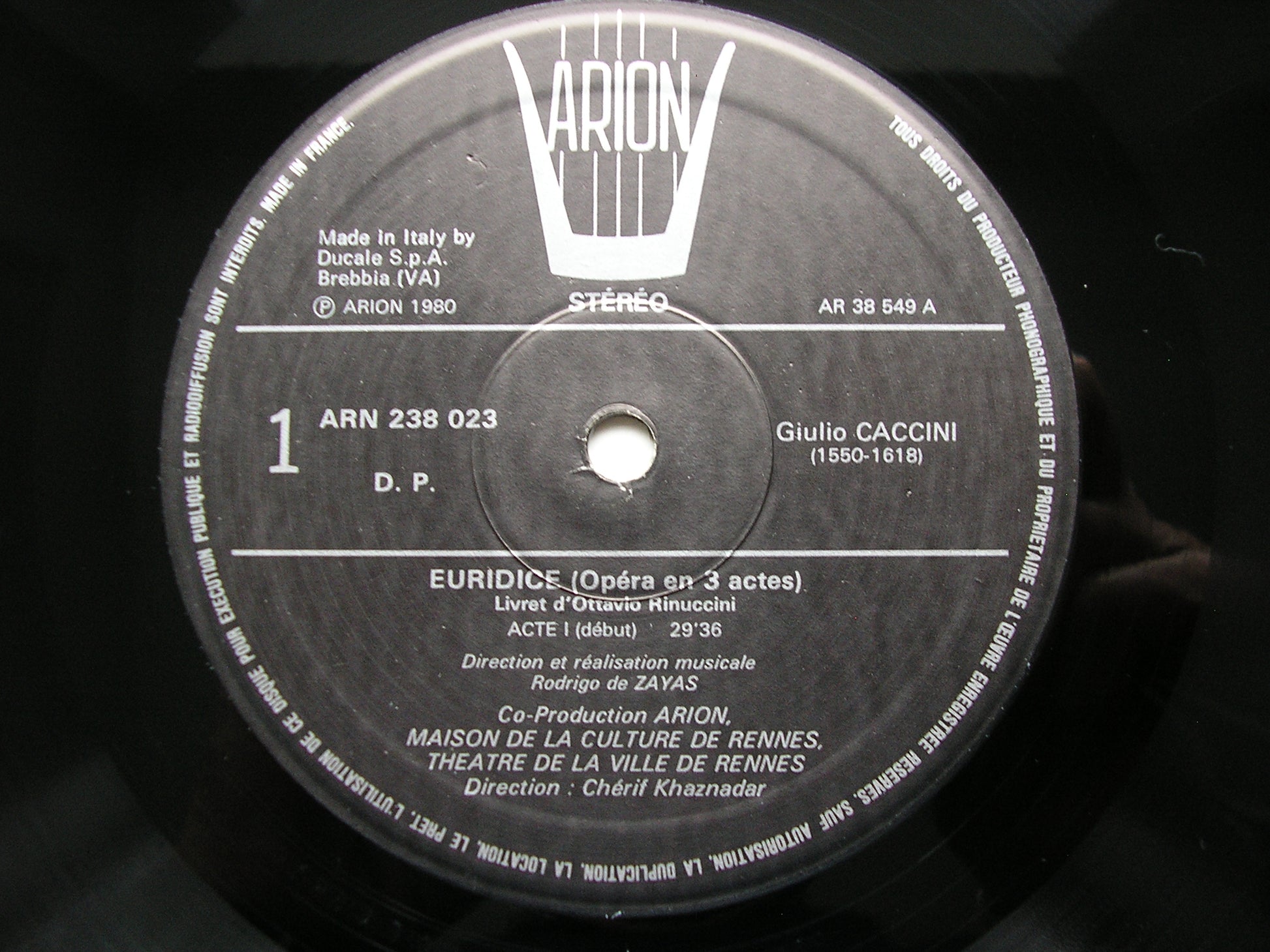CACCINI: EURIDICE SOLOISTS / INSTRUMENTAL ENSEMBLE / ZAYAS 2LP ARN 238023