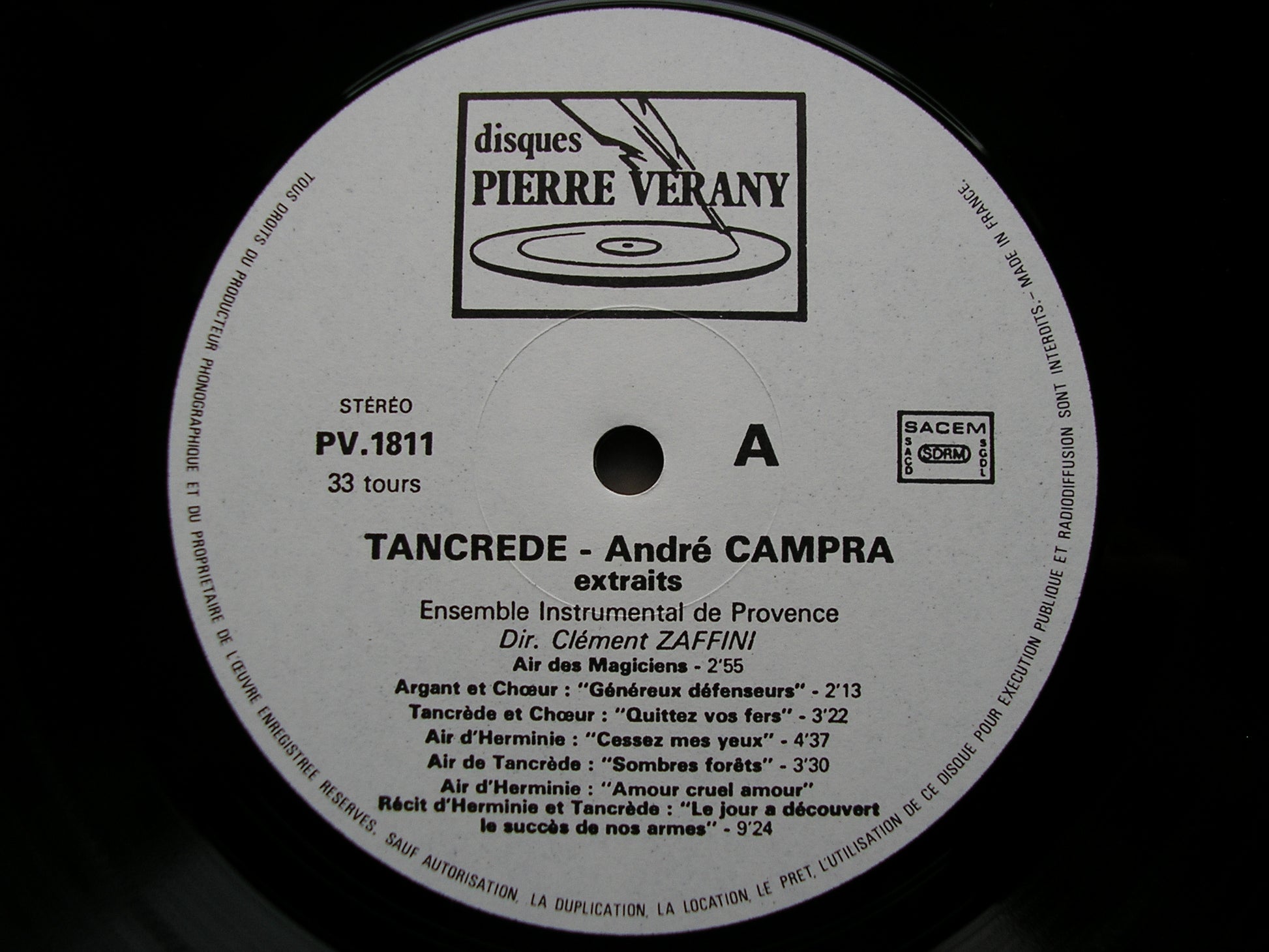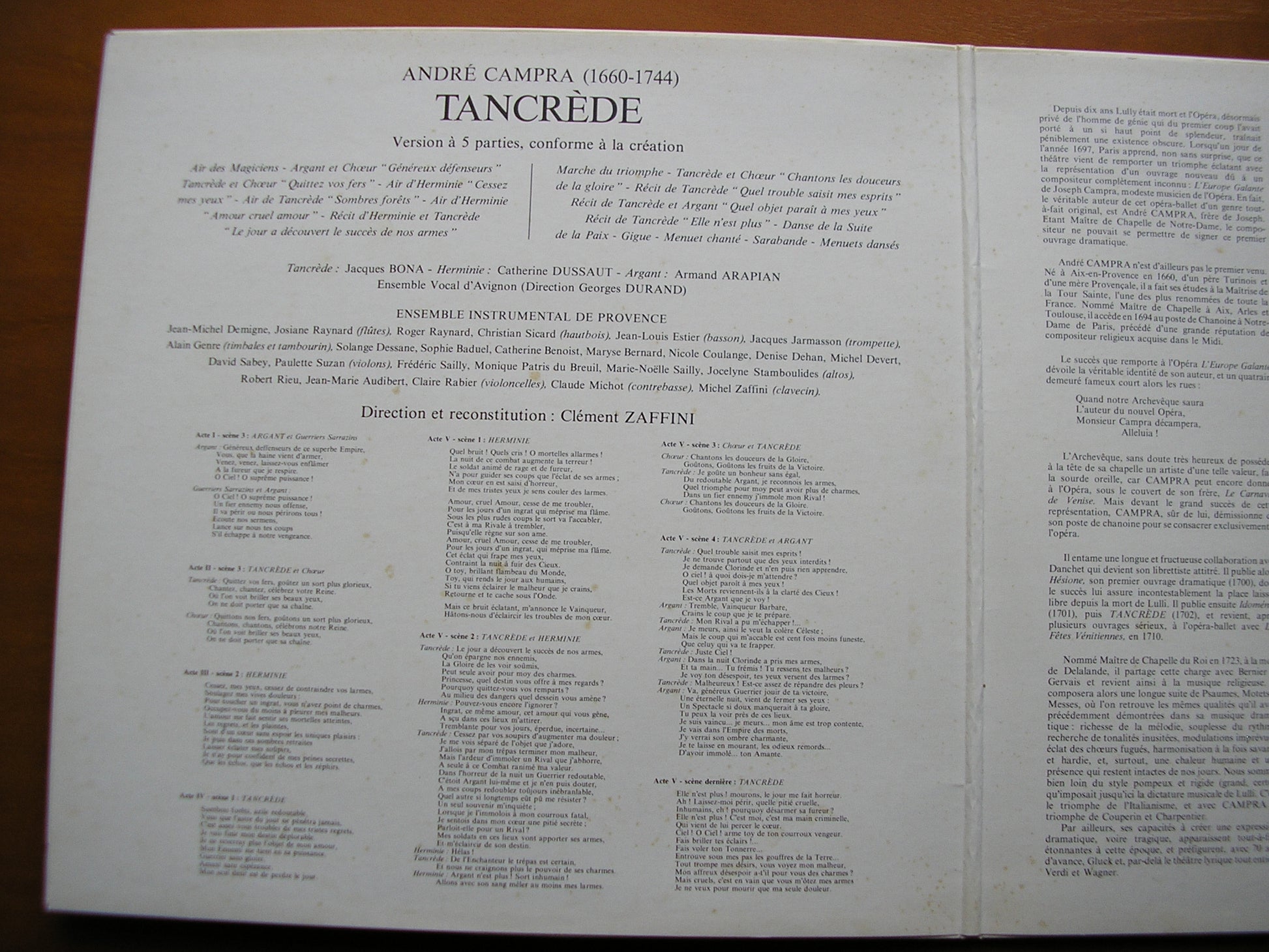 PV 1811 CAMPRA: TANCREDE    CATHERINE DUSSAUT / JACQUES BONA / ARMAND ARAPIAN / ENSEMBLE INSTRUMENTAL DE PROVENCE / CLEMENT ZAFFINI