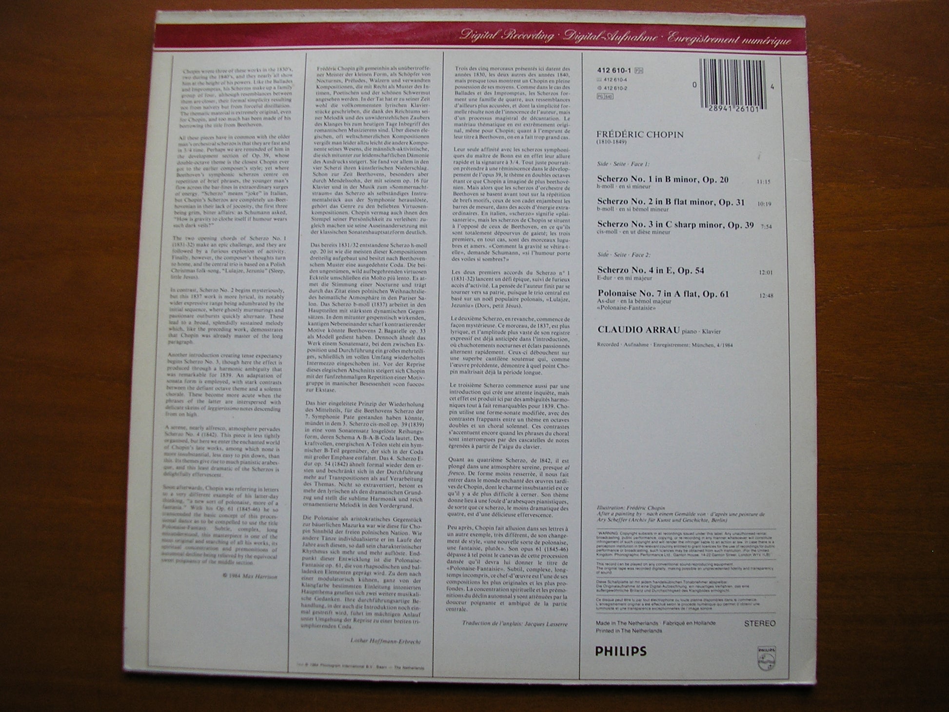 412 610 CHOPIN: FOUR SCHERZI / POLONAISE No. 7       CLAUDIO ARRAU