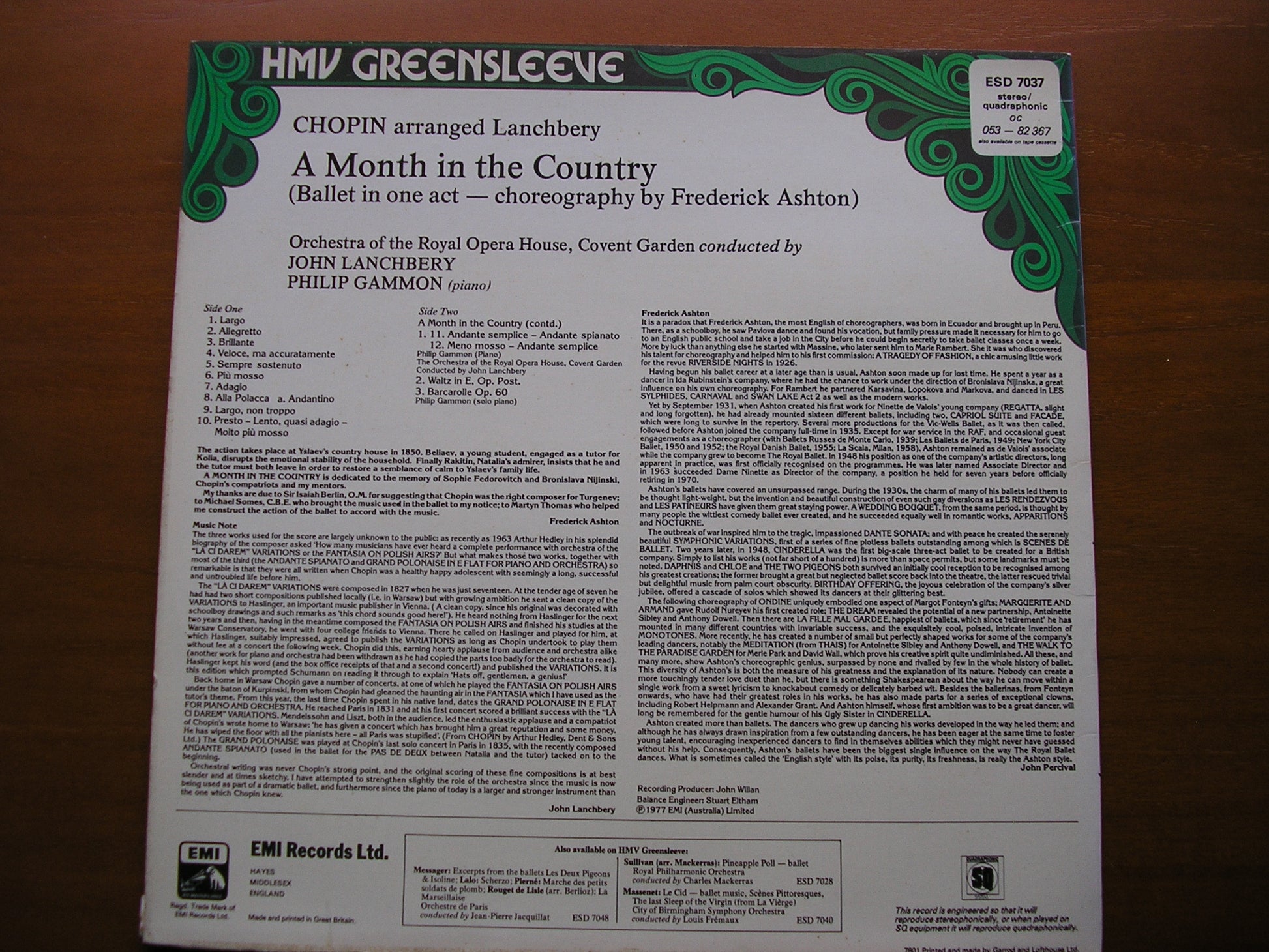 ESD 7037  CHOPIN / LANCHBERY: A MONTH IN THE COUNTRY       JOHN LANCHBERY / OROHCG