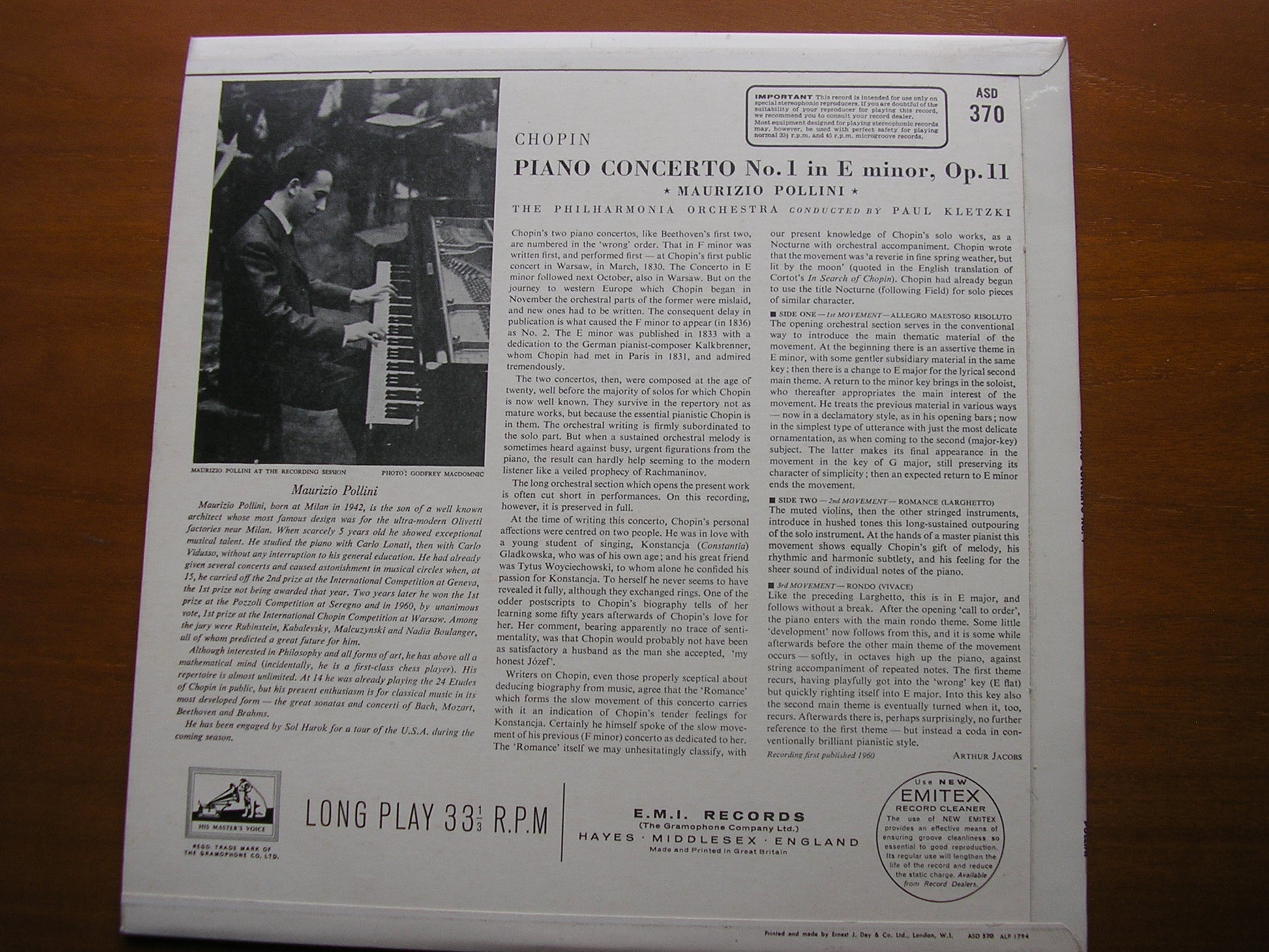 ASD 370  CHOPIN: PIANO CONCERTO No. 1      MAURIZIO POLLINI / PHILHARMONIA ORCHESTRA / PAUL KLETZKI