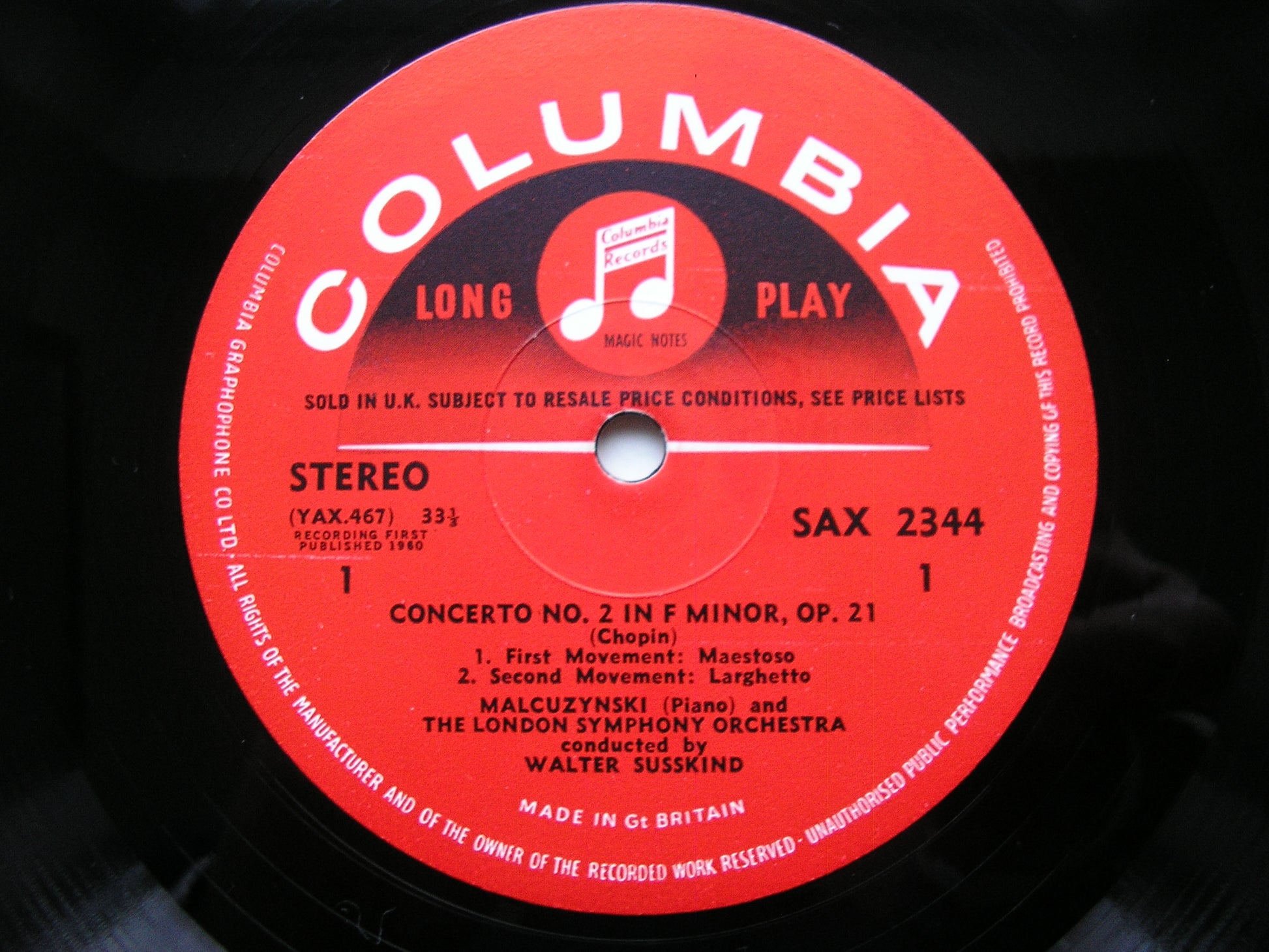 SAX 2344  CHOPIN: PIANO CONCERTO No. 2 / FANTAISIE in F      MALCUZYNSKI / LONDON SYMPHONY ORCHESTRA / WALTER SUSSKIND