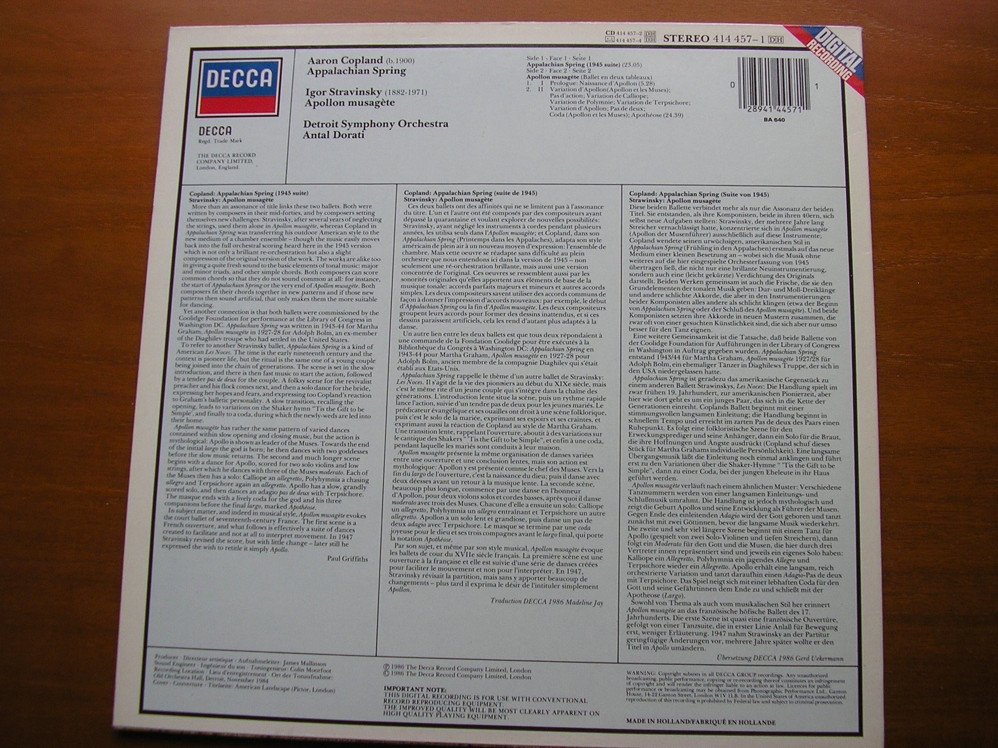 DECCA  HOLLAND  1986        DIGITAL          NM / EX+