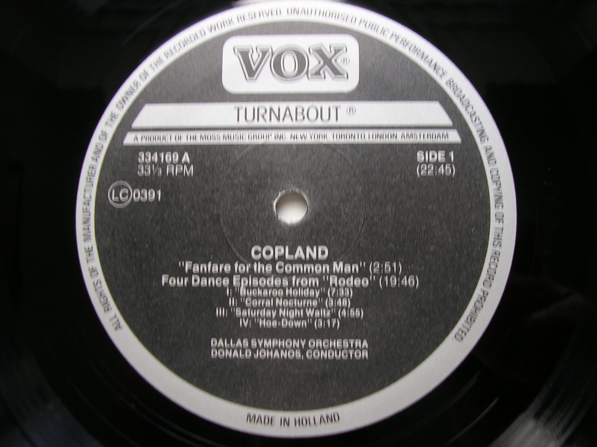 TV 334 169  COPLAND: BILLY THE KID / RODEO / FANFARE FOR THE COMMON MAN    DALLAS SYMPHONY ORCHESTRA / DONALD JOHANOS