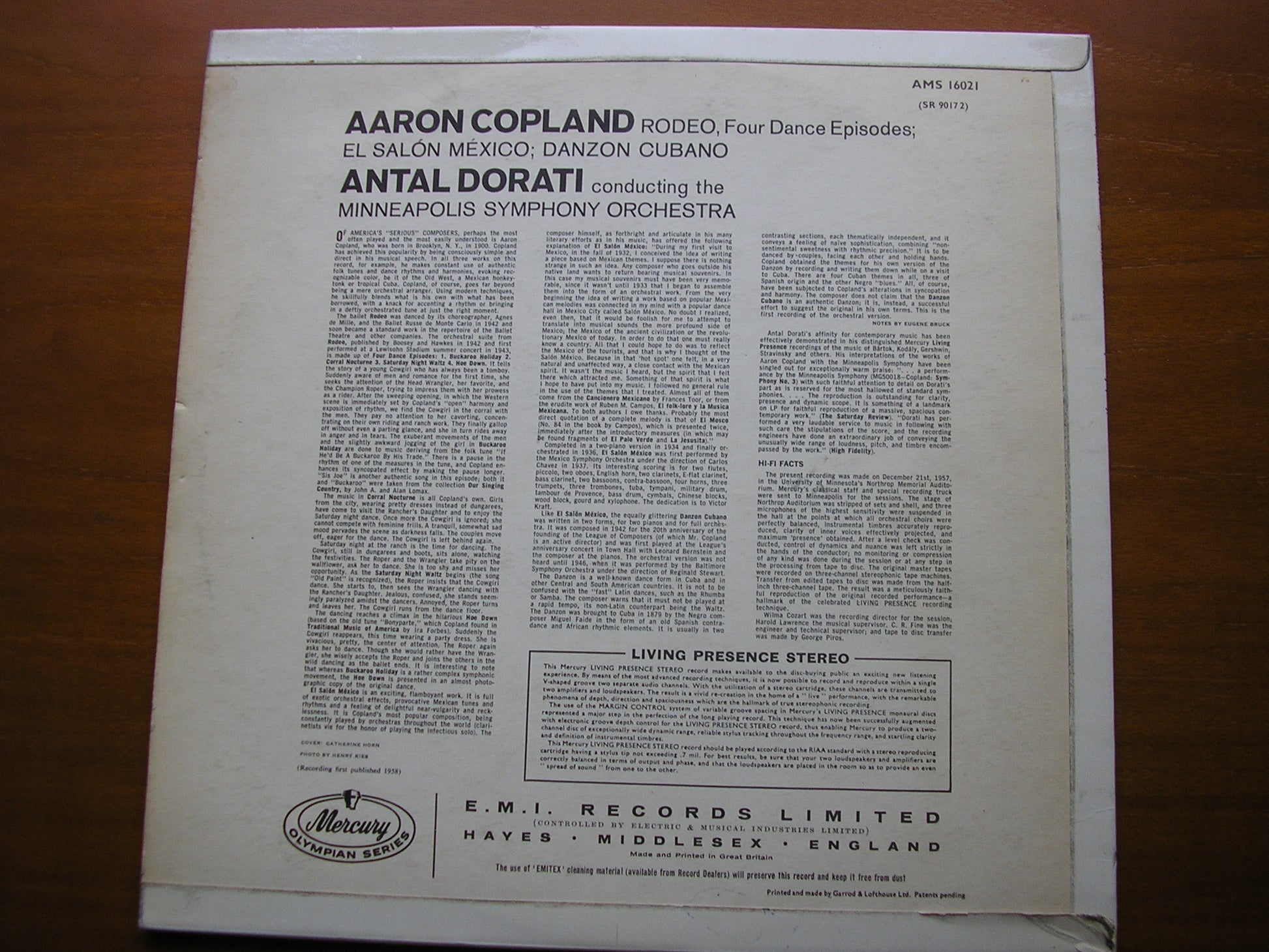 AMS 16021  COPLAND: RODEO / EL SALON MEXICO / DANZON CUBANO    ANTAL DORATI / MINNEAPOLIS SYMPHONY ORCHESTRA