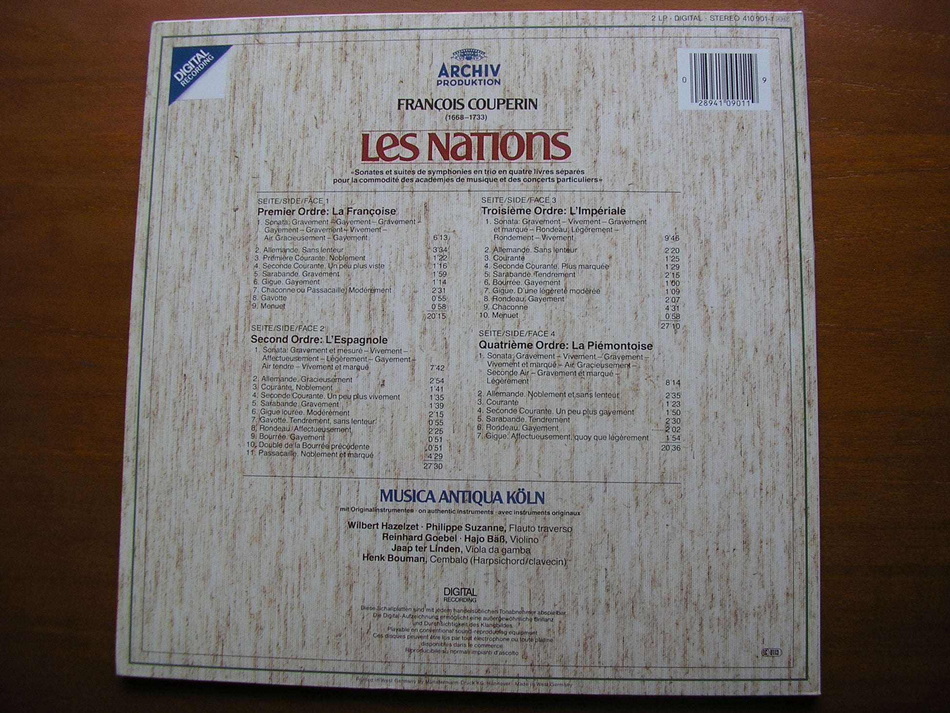 410 901  COUPERIN: LES NATIONS     MUSICA ANTIQUA COLOGNE / REINHARD GOEBEL