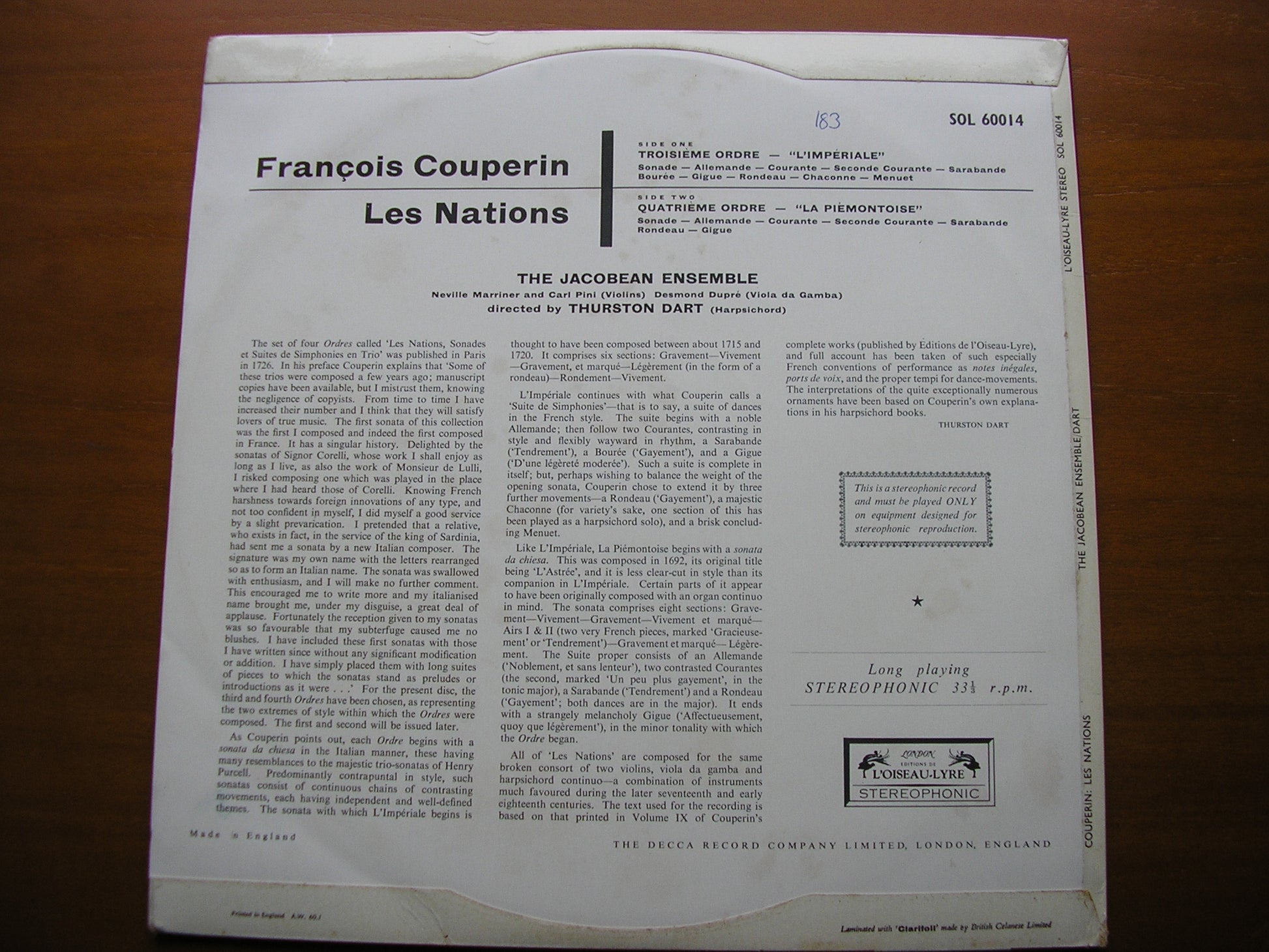COUPERIN: LES NATIONS THE JACOBEAN ENSEMBLE / THURSTON DART SOL 60014