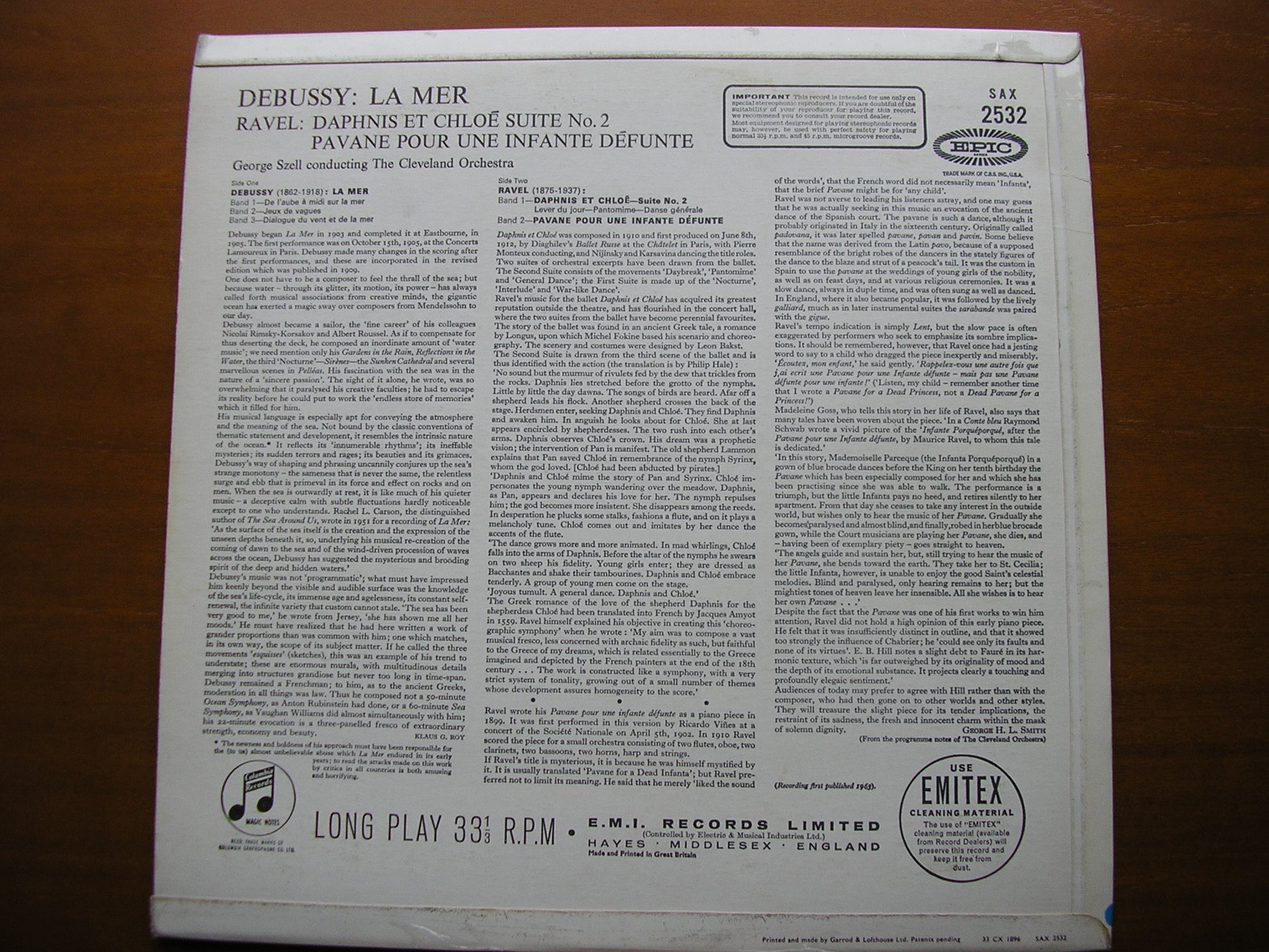 SAX 2532  DEBUSSY: LA MER / RAVEL: DAPHNIS & CHLOE Suite No. 2    GEORGE SZELL / CLEVELAND ORCHESTRA