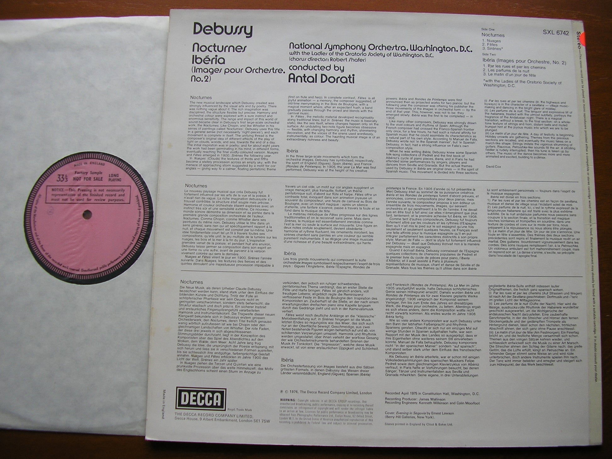 SXL 6742  DEBUSSY: NOCTURNES / IBERIA     ANTAL DORATI / NATIONAL SYMPHONY ORCHESTRA OF WASHINGTON DC