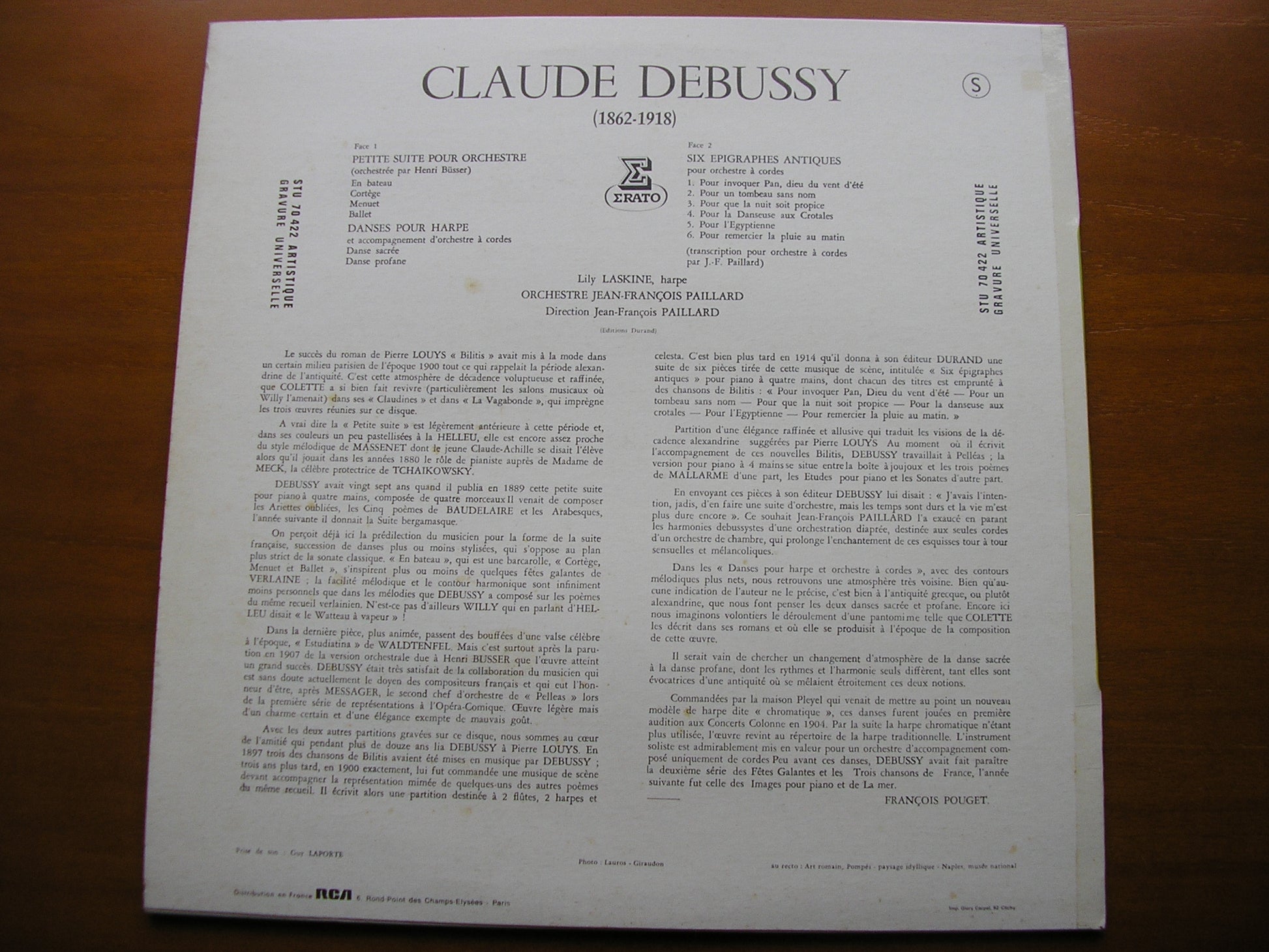 STU 70422  DEBUSSY: PETITE SUITE / DANSES / SIX EPIGRAPHS     LILY LASKINE / PAILLARD ORCHESTRA / JEAN-FRANCOIS PAILLARD
