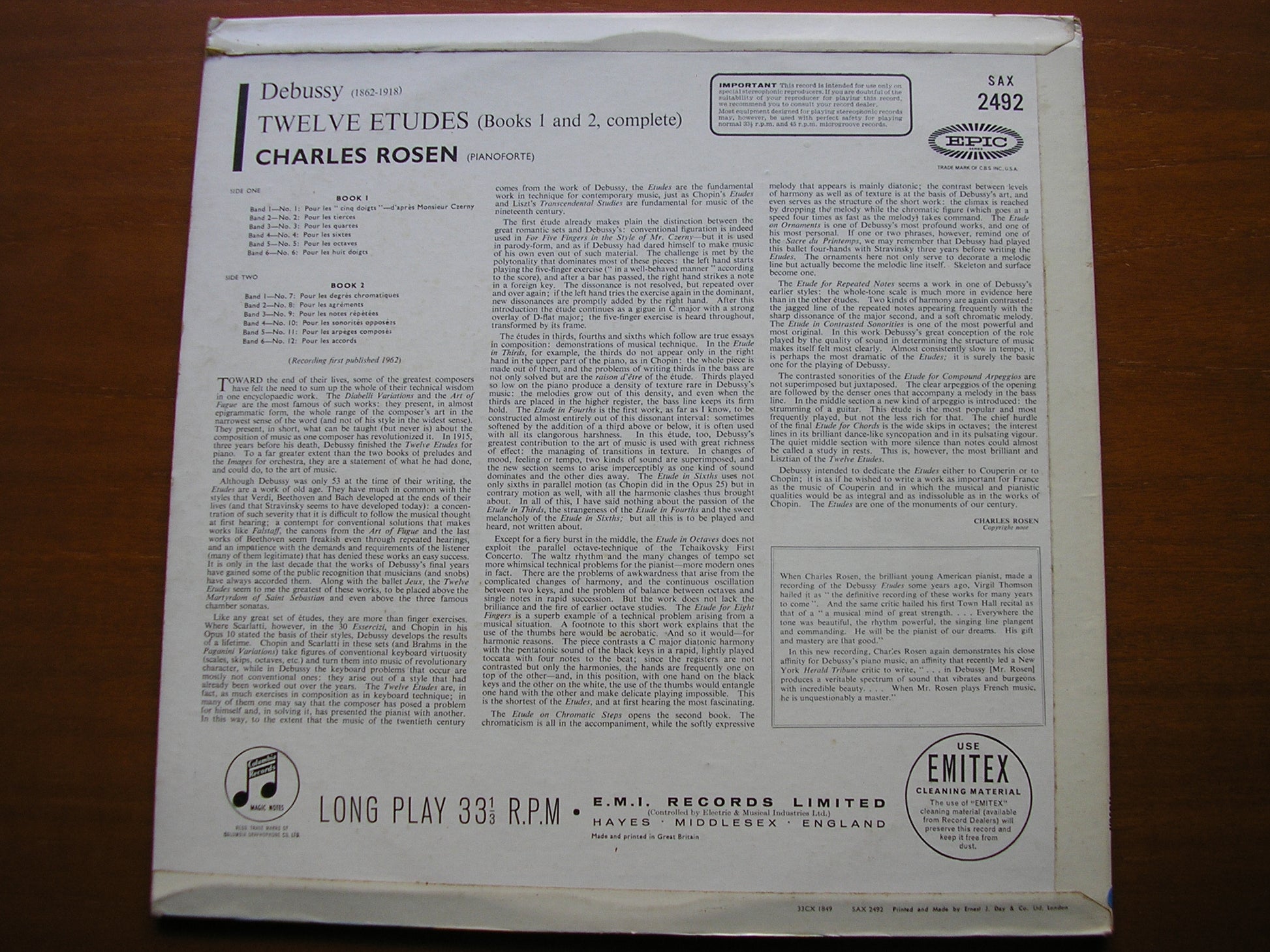 DEBUSSY: TWELVE ETUDES Books 1 & 2 CHARLES ROSEN SAX 2492
