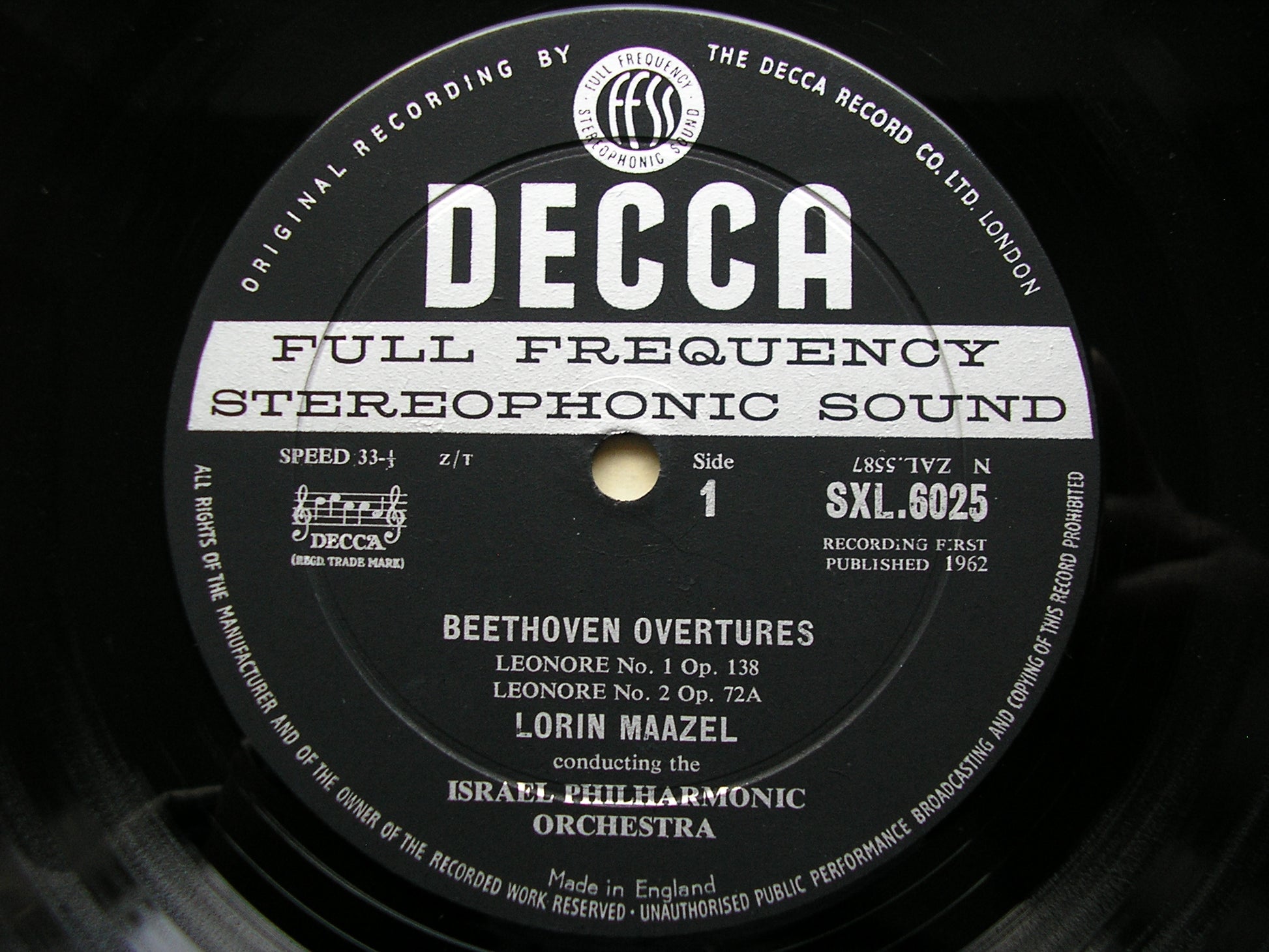 SXL 6025 BEETHOVEN: THE FOUR OVERTURES FOR FIDELIO MAAZEL / ISRAEL PHILHARMONIC ED1