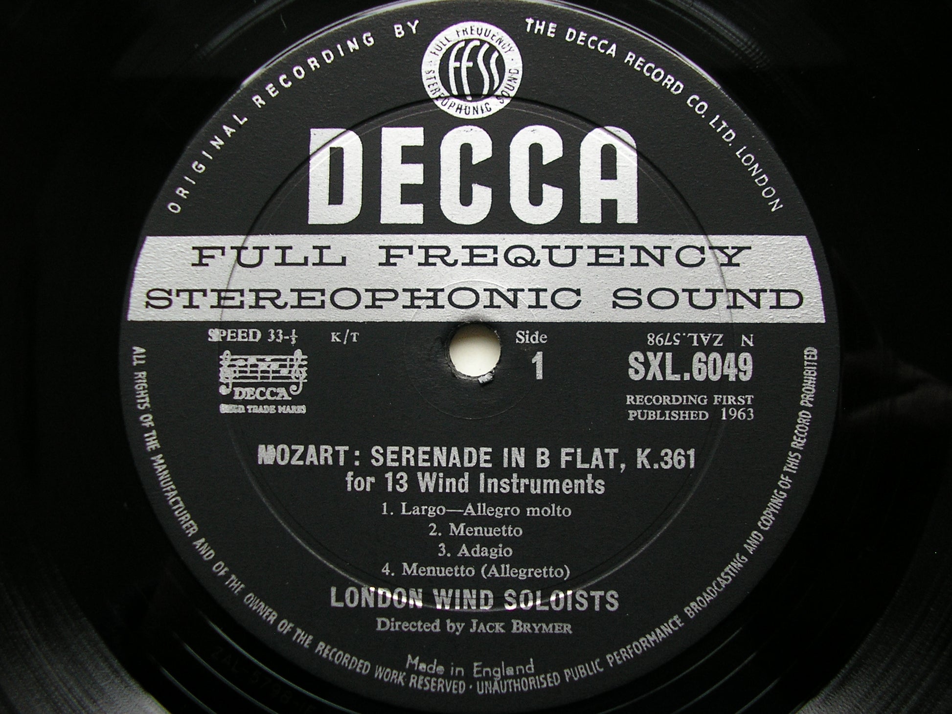 SXL 6049 MOZART: COMPLETE WIND MUSIC Volume 3 BRYMER / LONDON WIND SOLOISTS ED1